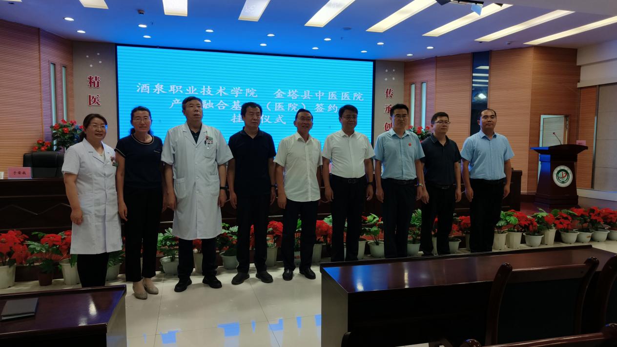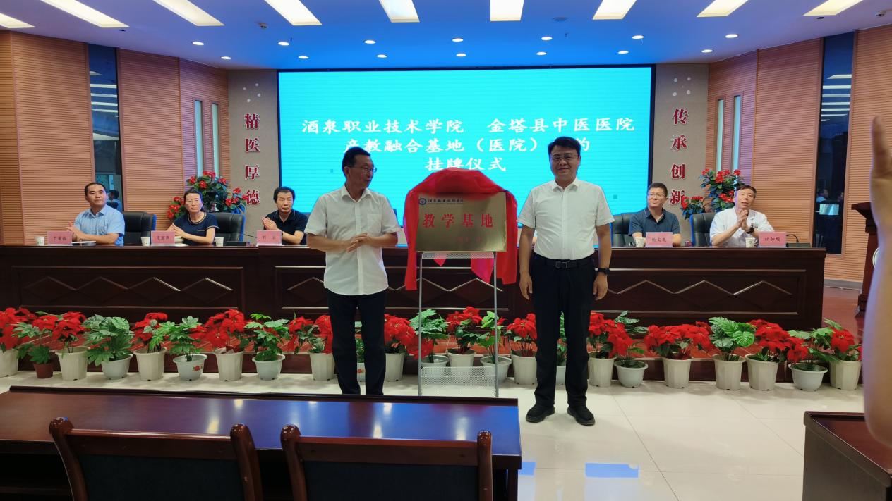 在调研座谈会上,刘治局长为大会致辞,并对我校一行表示热烈欢迎。易志军书记介绍了我校办学特色及医学院专业设置、人才培养、产教融合相关情况。医校双方就教学基地建设、医教协同、学生实习就业等方面达成共识,签订了校企合作框架协议,并共同为酒泉职业技术学院产教融合教学基地揭牌。