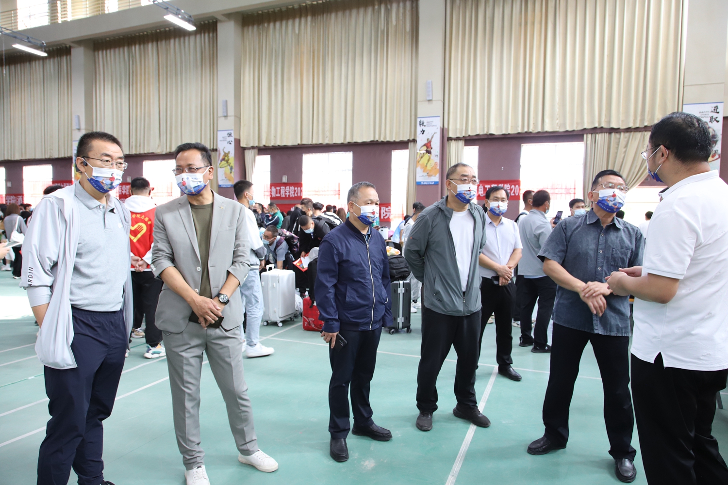 要闻快递 > 正文金秋九月、枫林如火,校园处处洋溢着热情祥和的喜庆氛围。9月5日-9月6日,4500余名2022级新同学如约而至,怀揣着梦想和憧憬,开启了昂扬奋斗的新征程。学校党委书记、校长易志军,党委副书记许军、党委委员、副校长王立智,党委委员、纪委书记、监察专员魏韡及党委委员、宣传统战部部长王金明来到迎新现场,了解新生报到情况、服务保障措施和各单位迎新举措,看望报到新生,慰问工作人员和学生志愿者,相关部门负责人员一同参加。