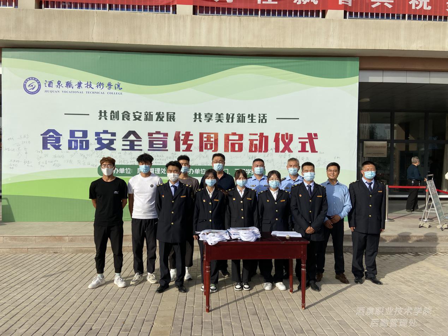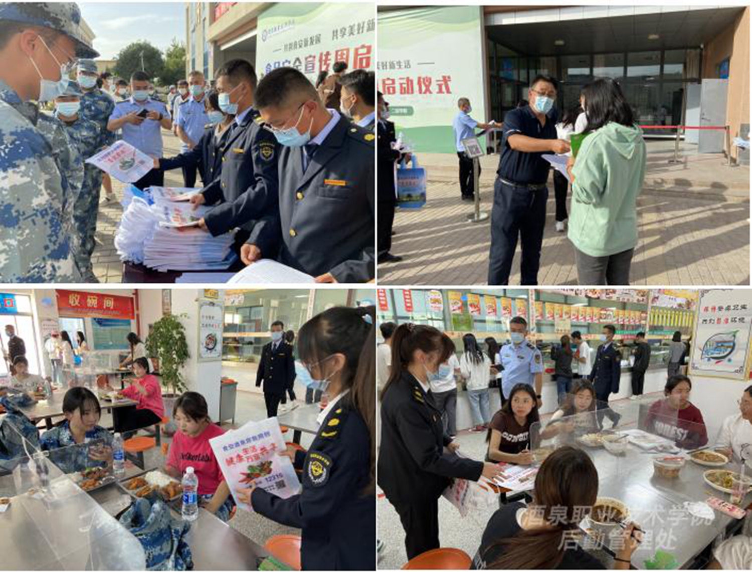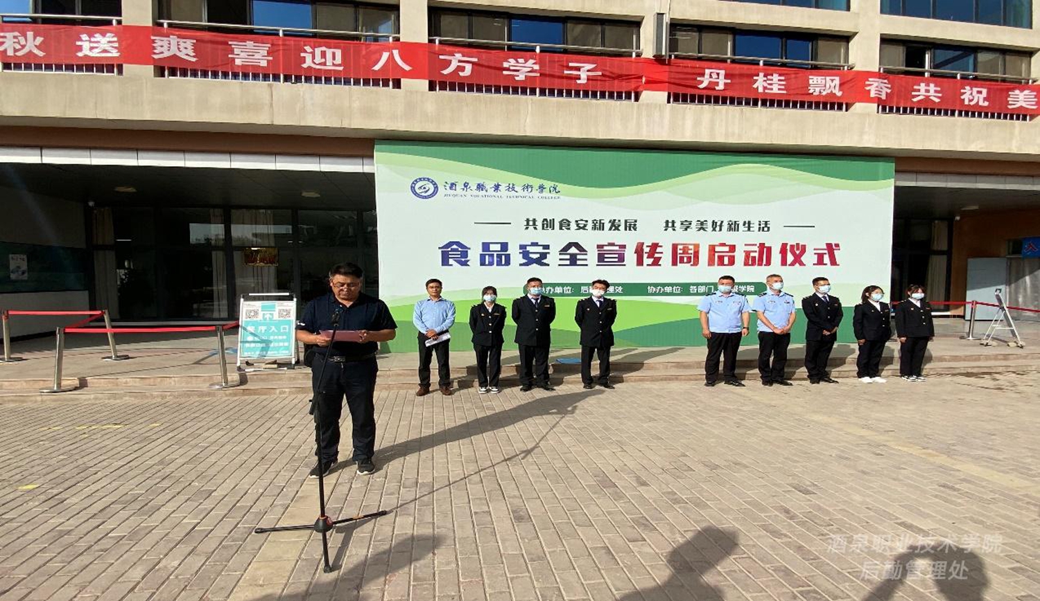 根据《甘肃省教育厅关于做好2022年全省食品安全宣传周活动的通知》精神,为切实增强师生员工的食品安全知识和意识,9月13日下午,学校邀请酒泉市市场监督管理局联合举行“共创食安新发展,共享美好新生活”食品安全宣传周活动启动仪式,酒泉市市场监督管理局餐饮科科长卢成元、一级主任科员李吉明应邀出席活动,后勤管理处负责人主持活动,部分职能部门、二级学院负责人、学生餐厅食品安全管理人员、档口业主及各学院学生代表参加启动仪式。