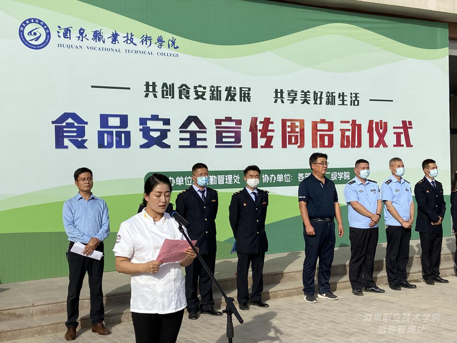 活动上宣读了《酒泉职业技术学院2022年全省食品安全宣传周活动方案》,动员全校师生员工关心、支持和参与食品安全工作,增强师生对食品安全工作的参与意识,普及食品安全科学知识,促进广大师生树立健康饮食理念,扎实推进我校食品安全工作的实施。