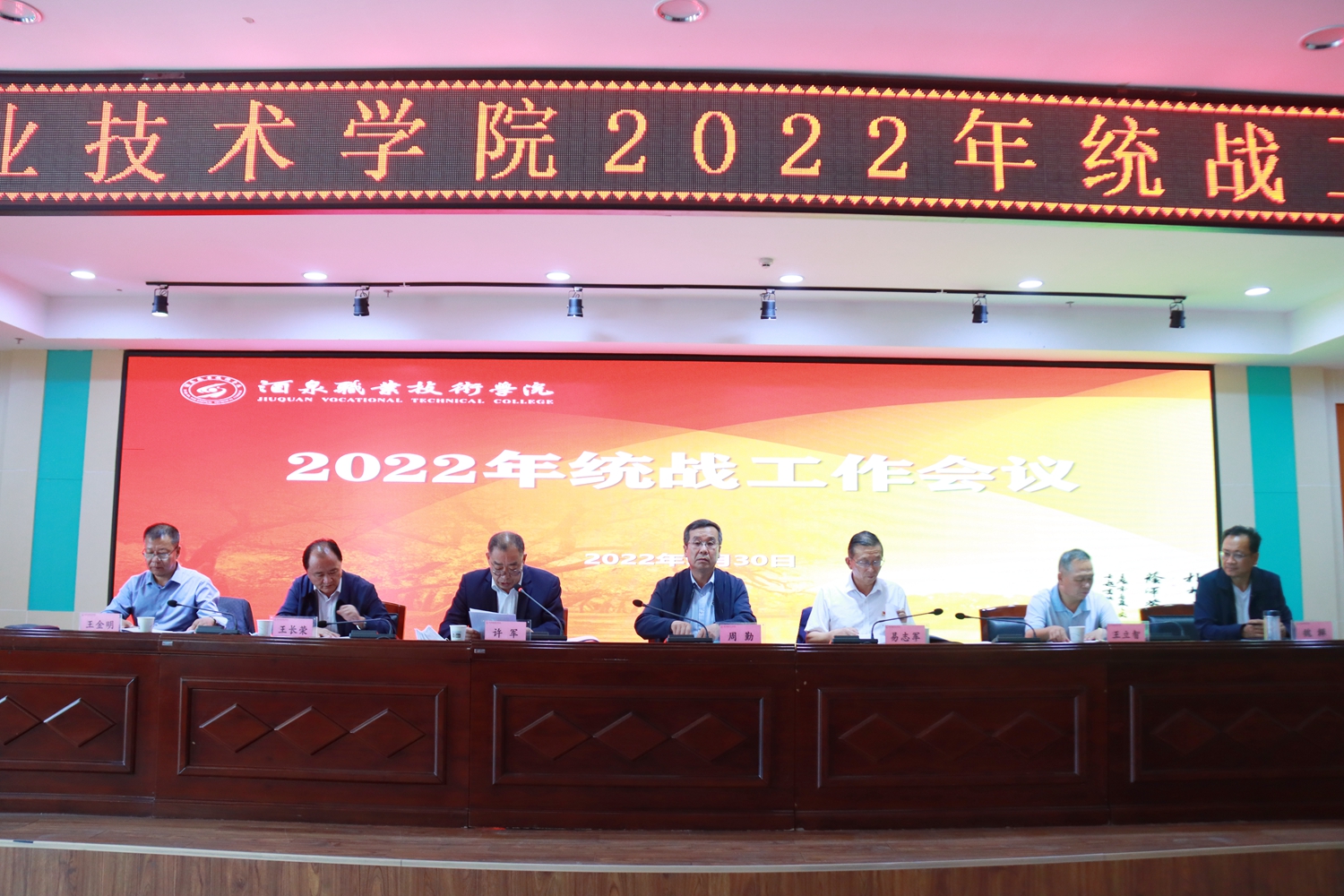 周勤讲话要求学校要认真学习贯彻习近平总书记关于新时代党的统一战线工作的重要思想,抓好中央、省委统战工作会议精神的学习宣传和贯彻落实,增强法宝意识,提高统战本领,为加快建设酒泉区域中心城市和建设幸福美好新酒泉凝聚人心、汇聚力量,以优异成绩迎接党的二十大胜利召开。