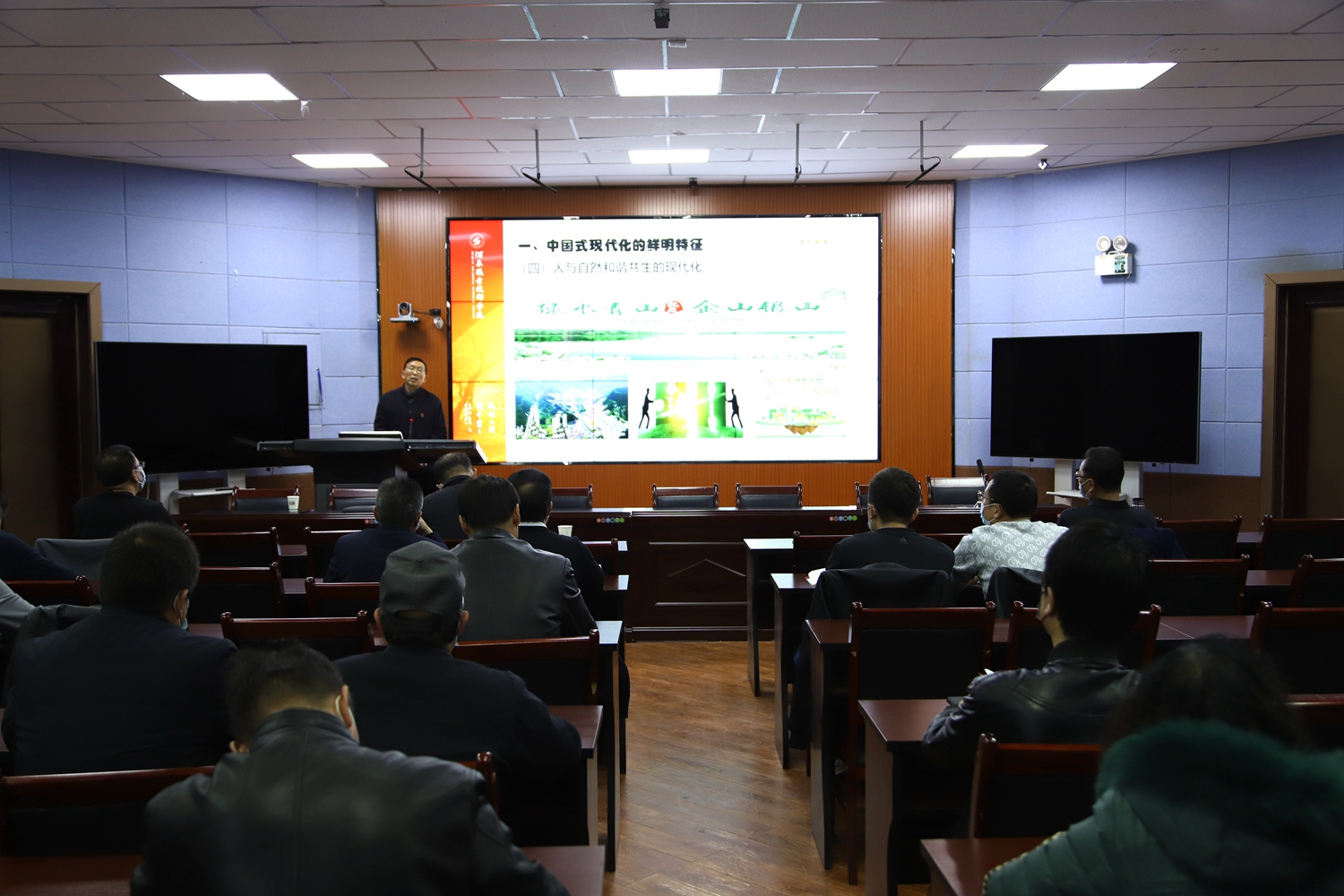 易志军以《全面把握中国式现代化的丰富内涵》为题结合自己学习感悟,重点围绕党的二十大主题、重大意义、主要成果和中国式现代化等方面,对党的二十大精神进行全面系统深入的宣讲解读。他指出,党的二十大是在全党全国各族人民迈上全面建设社会主义现代化国家新征程、向第二个百年奋斗目标进军的关键时刻召开的一次十分重要的大会。学校广大党员干部要深刻理解和把握党的二十大的重大意义、精神实质、丰富内涵和实践要求,增强“四个意识”、坚定“四个自信”、做到“两个维护”,全面贯彻习近平新时代中国特色社会主义思想,弘扬伟大建党精神,踔厉奋发、勇毅前行,坚定不移把党的二十大提出的目标任务落到实处,奋力谱写新时代学校高质量发展新篇章。