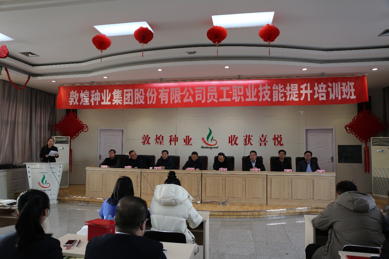 要闻快递 > 正文2023年1月14日下午,由敦煌种业学院主办的甘肃省敦煌种业集团股份有限公司员工职业技能提升培训结业典礼在敦煌种业玉米分公司会议室举行。酒泉职业技术学院党委书记、校长易志军,甘肃省敦煌种业集团股份有限公司副董事长、总经理、敦煌种业产业学院理事张绍平等校企双方领导和培训班130名学员参加了结业典礼。