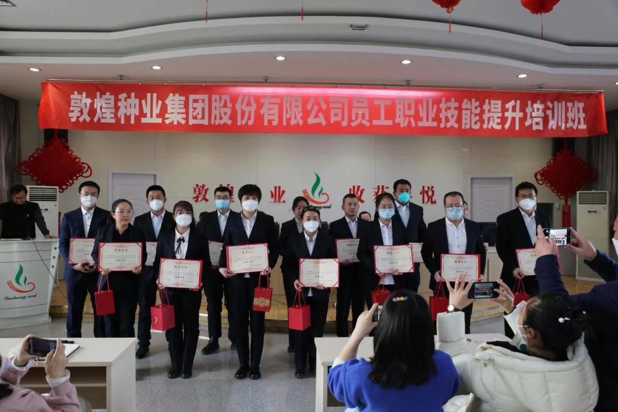 在结业典礼上,敦煌种业产业学院院长柳立新宣读了“关于甘肃省敦煌种业集团股份有限公司员工职业技能提升培训优秀学员表彰的通报”,并对15名优秀学员进行了表彰奖励,优秀学员代表肖晶晶分享培训收获和感悟。