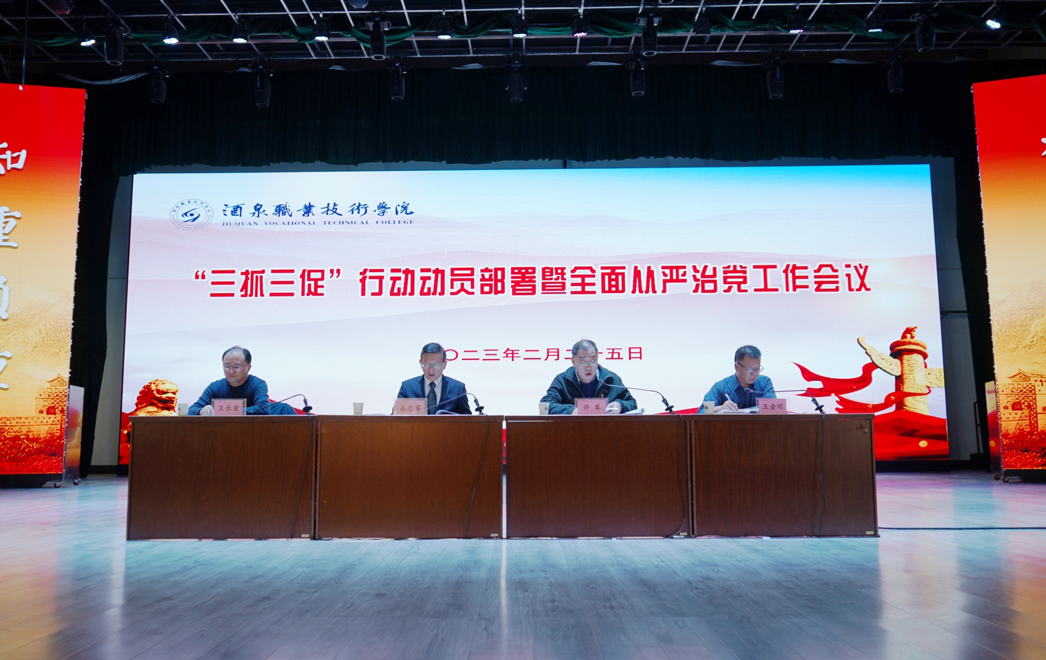 会上,传达学习了省委书记、省“三抓三促”行动领导小组组长胡昌升在全省“三抓三促”行动部署动员会、省委书记、省人大常委会主任胡昌升在省纪委十四届二次全会上的讲话精神;宣读了《酒泉职业技术学院“三抓三促”行动实施方案》。