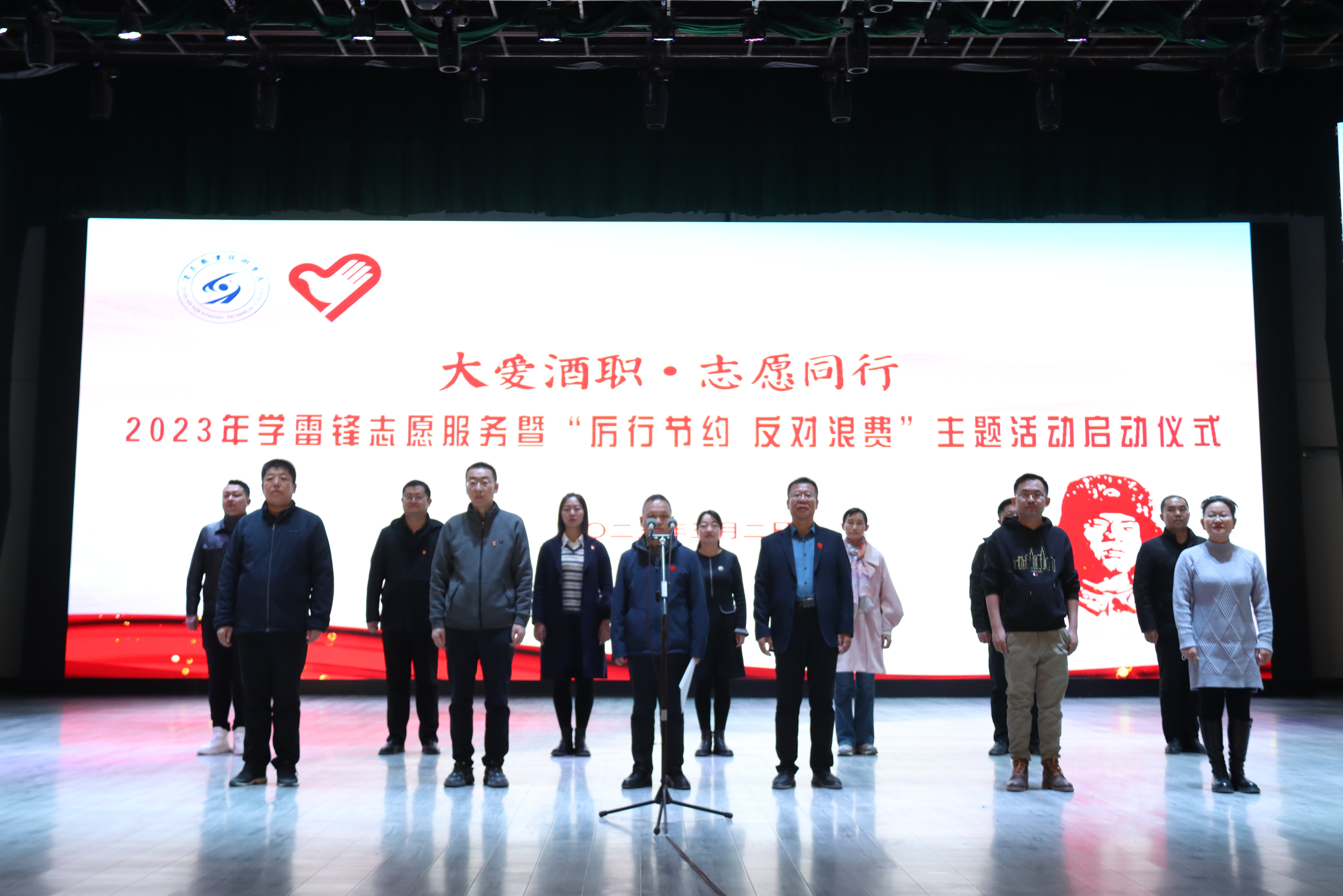 启动仪式上,校团委、学生会面向全校师生发出了“大爱酒职·志愿同行” 学雷锋志愿服务和“厉行节约·反对浪费”的倡议。
