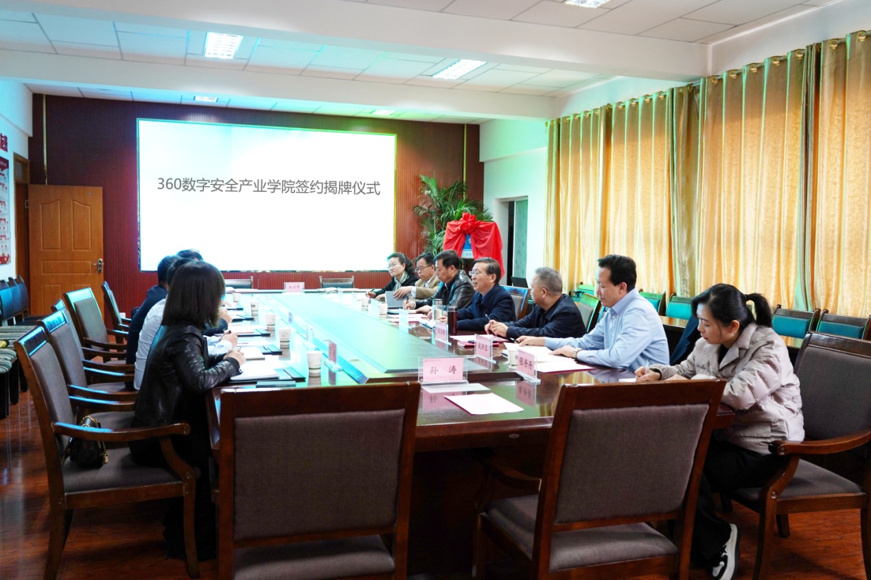 3月15日上午,学校与360政企安全集团共建“360数字安全产业学院”签约揭牌仪式在行知楼四楼会议室举行,360政企区域总经理李铁牛一行6人,学校党委书记、校长易志军,合作发展处、电子与信息工程学院相关人员出席此次签约揭牌仪式。仪式由学校党委委员副校长王立智主持。