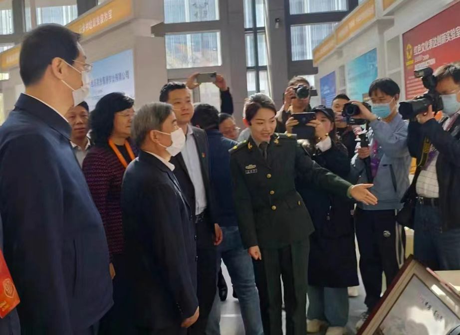 3月30日——4月1日,首届全国退役军人创业创新成果展交会在西安举行。退役军人事务部党组成员、副部长常正国,陕西省委常委、常务副省长王晓出席开幕式。甘肃省退役军人事务厅推荐的我校《敦煌壁画艺术的传承与创新》项目在甘肃展馆展出。