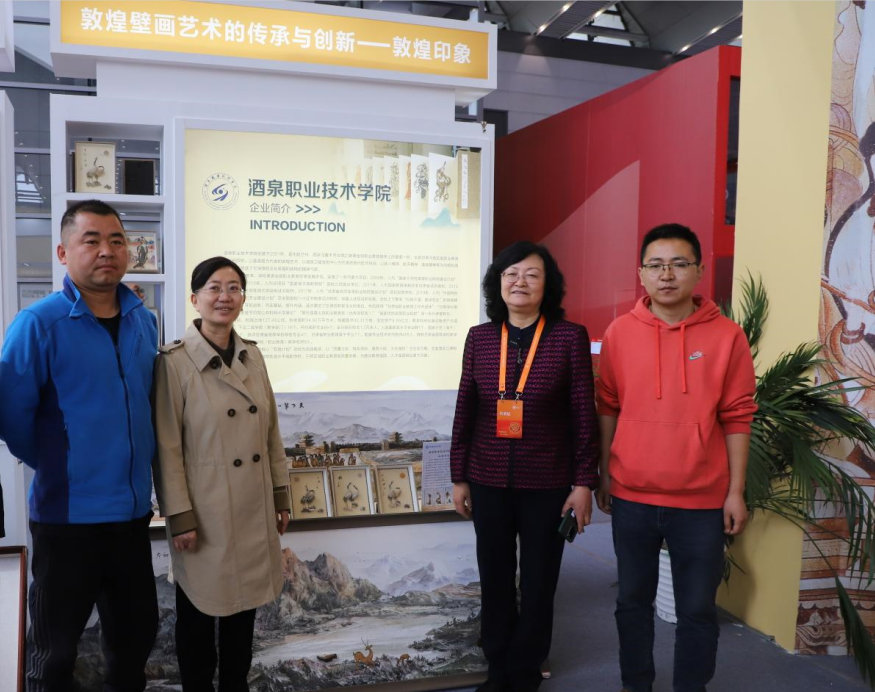 在甘肃展厅,常正国、王晓详细了解了我校推荐的《敦煌壁画艺术的传承与创新》项目并鼓励项目充分利用此次展交会搭建的平台,开展“展示交流、产品推介、项目对接、相互学习、合作发展”。