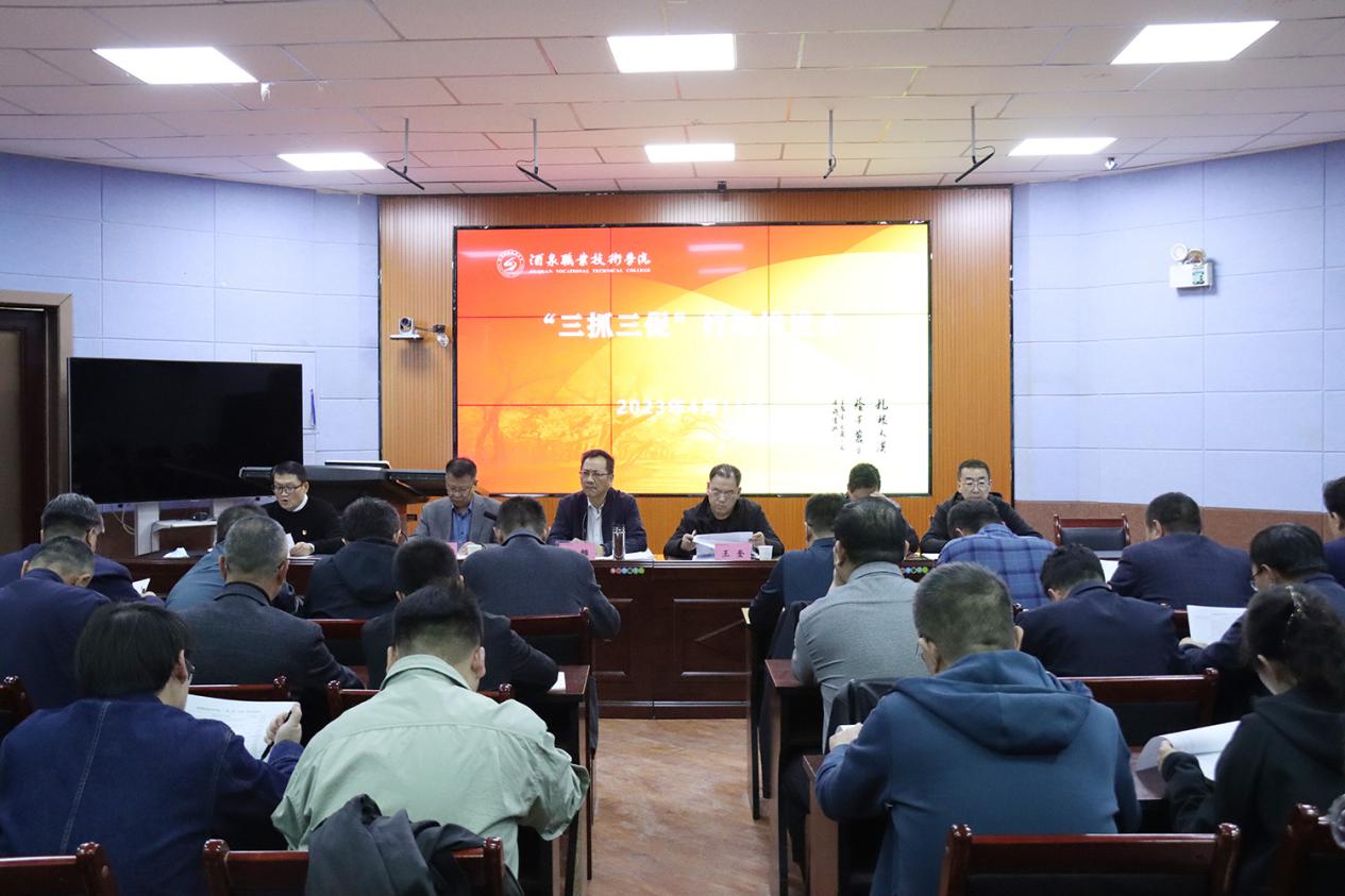 要闻快递 > 正文酒泉职业技术学院立足新发展理念,紧抓“三抓三促”行动关键,坚持高站位谋划“三抓三促”行动效能提升,高标准全面推进行动提质增效。全校上下紧锣密鼓开展各项活动,补短板、强弱项、抓落实、促发展,齐心协力下好“一盘棋”,初步形成了追赶进位、争相出彩的生动局面,为进一步推进学校攻坚创本和双高计划建设奠定坚实基础。