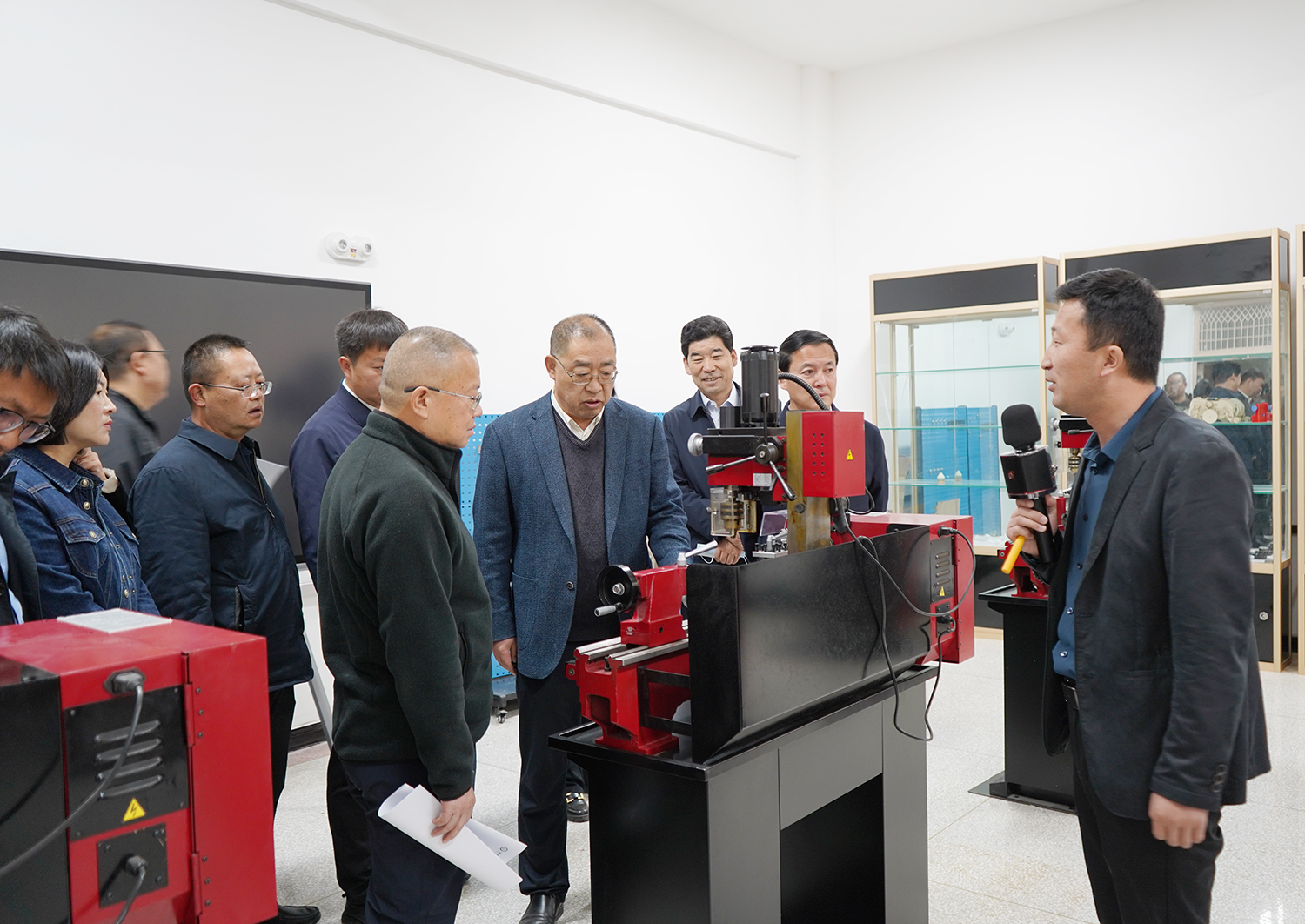 考察团一行实地查看了学校智能制造中心、医教协同中心、新能源技术国际共享中心、机械加工中心及土木水利实训中心等场地,重点了解了学校实验实训条件、校园文化建设和产教融合发展等情况。许军详细介绍了学校基本概况、办学定位和成效特色,并就校企共建产业学院的合作模式、育人目标和成果成效进行了重点介绍。许军表示,保山是一座历史悠久,名胜古迹众多,物产丰富,生态宜居的山水田园城市,希望以此次考察为契机,进一步加强双方沟通对接,深化交流合作,相互学习借鉴,实现优势互补,互惠互利、共谋发展,开创交往交融、合作共赢的新局面。