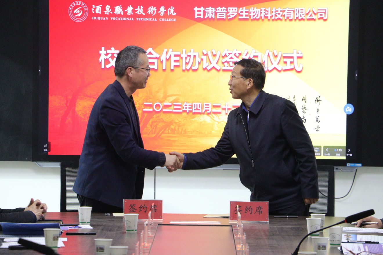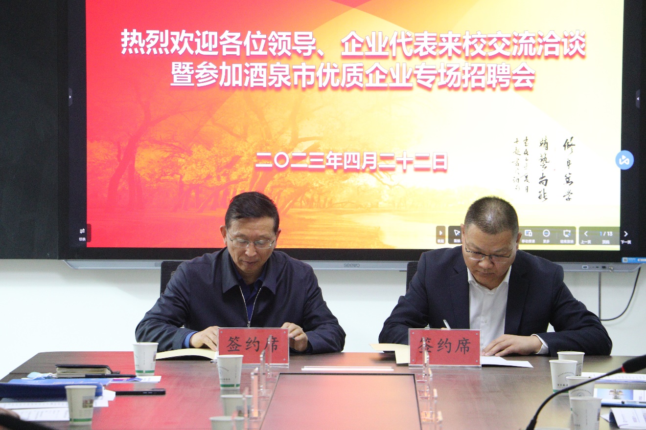 会上,学校和瓜州县人民政府签订了校政合作协议;与甘肃中核弘源企业管理有限公司等5家优质企业签订了校企合作协议;与酒泉正泰新能源科技有限公司等4家优质企业签订订单培养合作协议;授予甘肃中核弘源企业管理有限公司等5家优质企业实习就业基地。