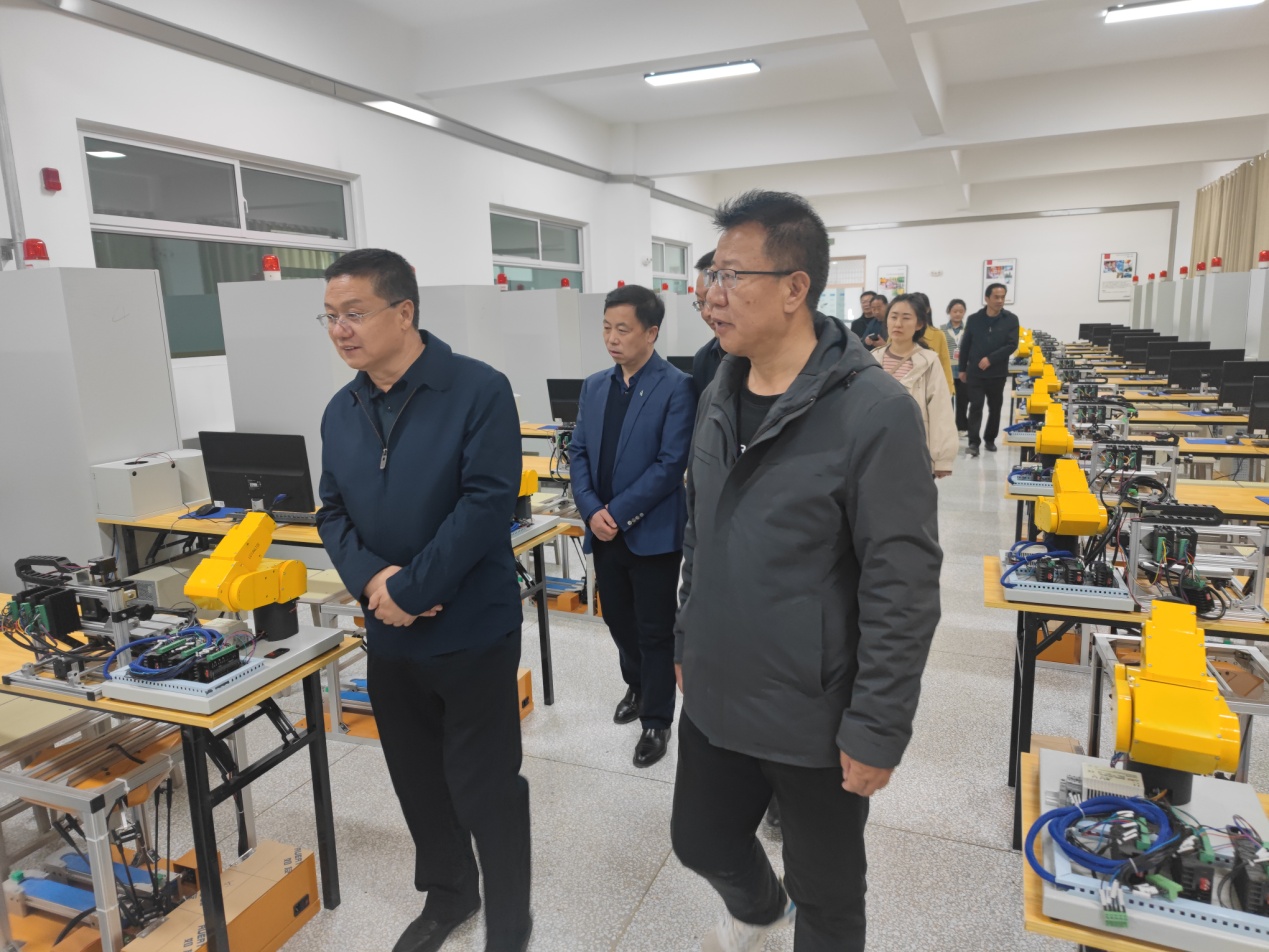 柳新会一行在王金明副校长等的陪同下深入菜鸟驿站、智慧财经商贸实训中心、智能制造中心、百度智能云(酒泉)人工智能基础数据产业基地、敦煌非遗传习所等场地,重点了解了学校快递物流运营、技术技能人才培养、实验实训条件建设、校园文化建设及产教融合发展等情况。并召开了座谈会。