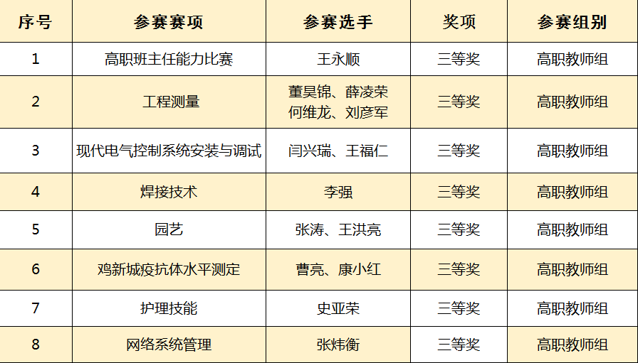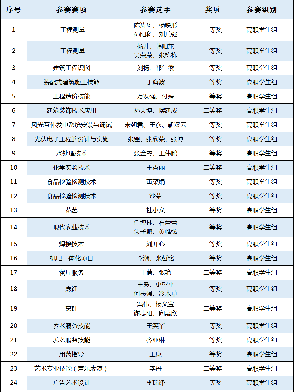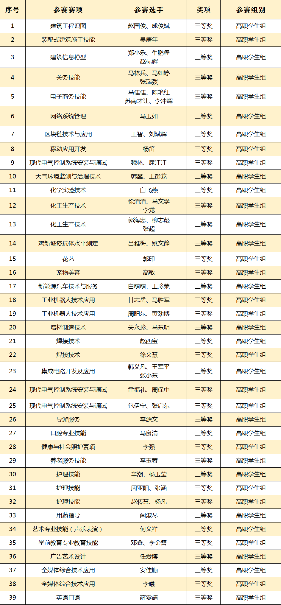 2023年“中银杯”甘肃省职业院校技能大赛圆满闭幕。本届大赛共设24个赛点,分布在兰州新区职教园区服务保障中心和11个市州。共有来自全省28所高等职业学校、3所技师学院,116所中等职业学校、30所技工学校,7767名学生、2105名教师,共计9872名师生将参加17个大类210个赛项的技能大比拼。我校师生经过紧张激烈的竞争角逐,获得学生组一等奖9项,二等奖24项,三等奖39项;教师组一等奖2项,二等奖12项,三等奖8项的优异成绩,其中烹饪、餐厅服务、导游服务、建筑工程识图、学前教育技能、风光互补发电系统安装与调试等6个赛项获得参加2023年全国职业院校技能大赛的参赛资格。