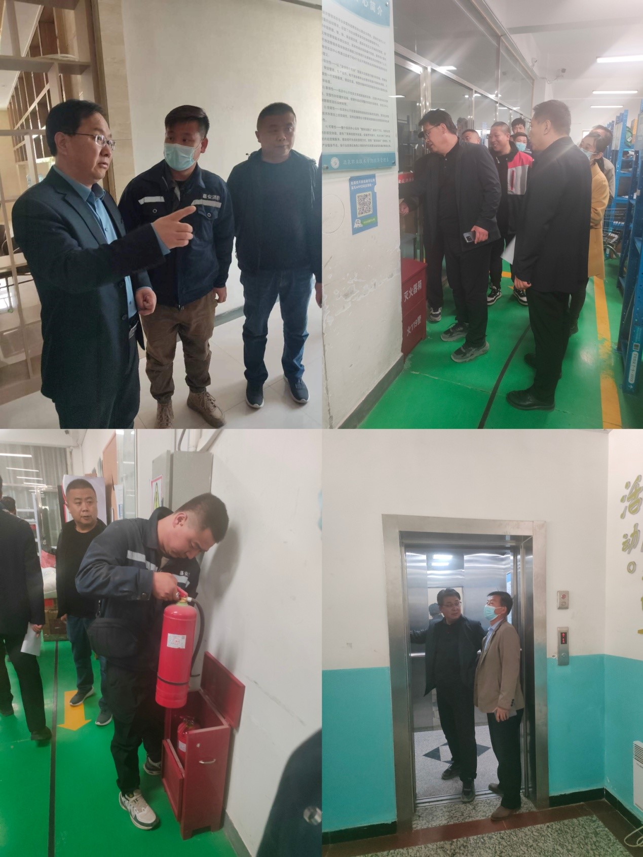 检查人员一行先后对师资培训中心、学生公寓、教学楼、图书馆、实训车间、危化品实验室、餐厅、超市、菜鸟驿站、学生社团活动室、在建工地等的消防、用电、食品等各项安全及周边的治安、交通、工作进行了全面的排查。