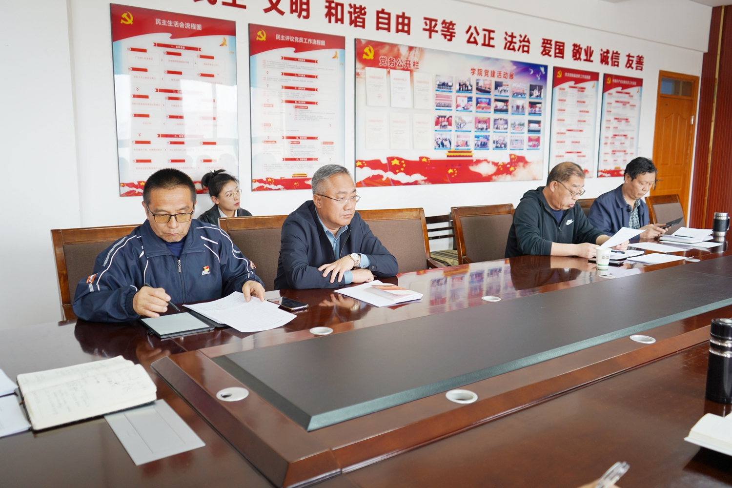 各党支部书记、主题教育各工作组组长及成员参加会议。