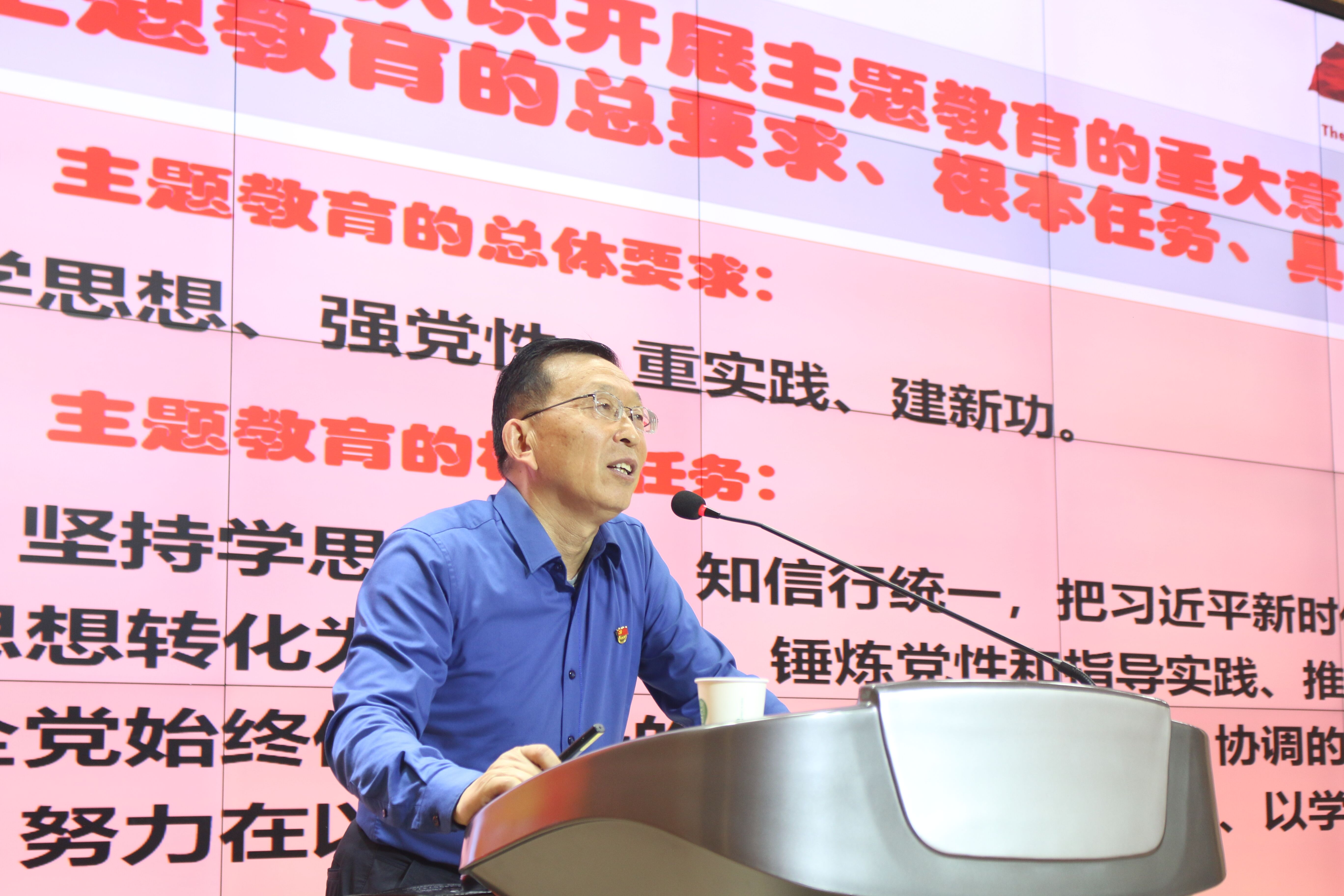 易志军书记以“理想 信念 使命”为题,首先从深刻认识开展主题教育的重要意义、总要求、根本任务等进行了详细的阐述。他强调,要坚持学思用贯通、知信行统一,把习近平新时代中国特色社会主义思想转化为坚定理想、锤炼党性和指导实践、推动工作的强大力量,努力在以学铸魂、以学增智、以学正风、以学促干方面取得实实在在的成效。接着,从准确把握理想信念的深刻内涵,坚定理想信念是共产党人安身立命的根本入手,要求各党组织和党员干部要用历史唯物主义世界观和方法论抓好思想理论建设,抓好党性教育,强化理想信念的体制机制保障,始终保持共产党人的本色,彰显共产党人的人格力量。最后,从坚定理想信念,坚守使命追求阐述,要求广大师生要把开展主题教育同深入贯彻党的二十大精神结合起来,积极行动,以实干担当促发展,高效做到专业建设匹配产业发展,人才培养质量匹配产业高质量发展要求,以创建酒泉职业技术大学为奋斗目标,以推动建设市域产教联合体为抓手,深化产教融合、科教融汇,不断提升人才培养质量,提高毕业生在酒泉的就业比率,为加快建设幸福美好新酒泉贡献酒职力量。