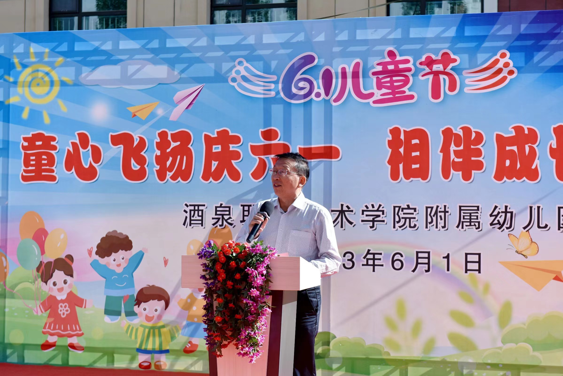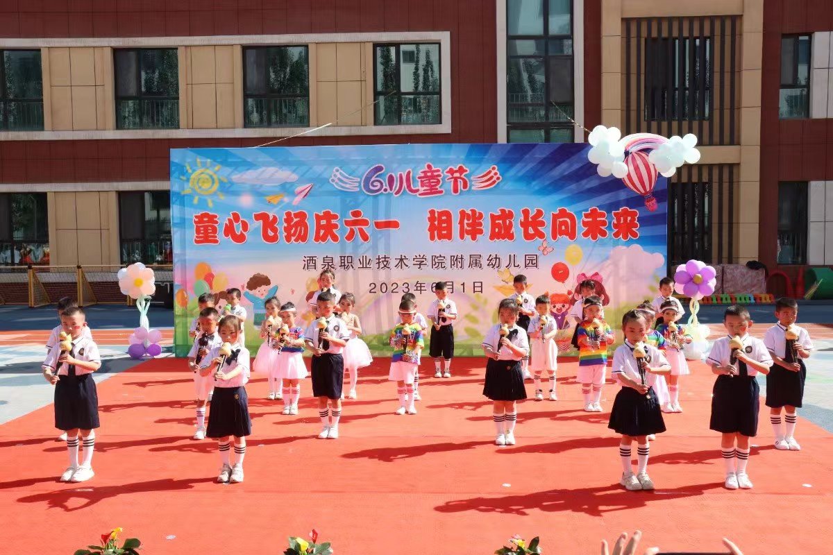 要闻快递 > 正文2023年5月31日上午,酒泉职业技术学院附属幼儿园老师和孩子们举行了“童心飞扬庆六一·相伴成长向未来”文艺演出庆祝活动。