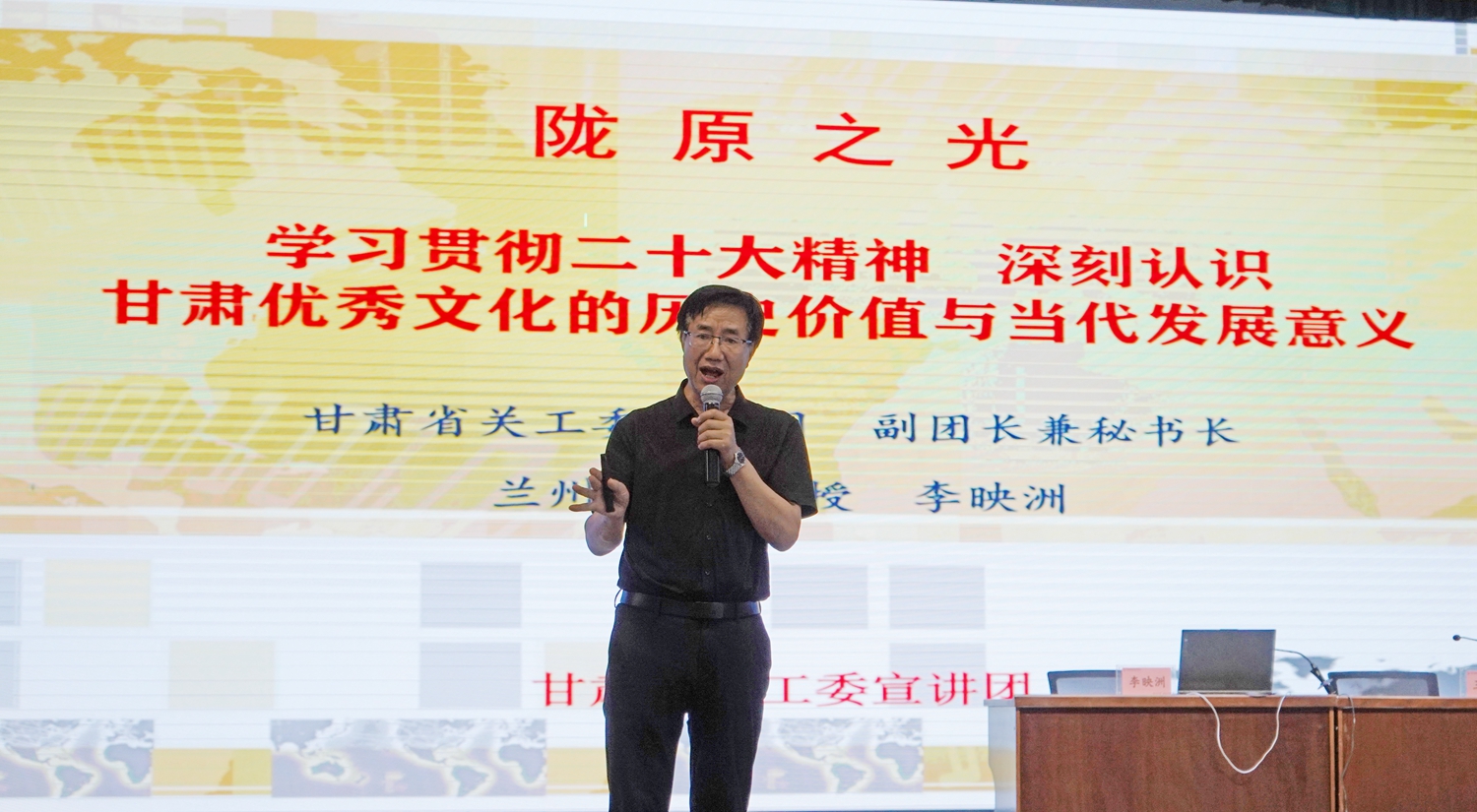 李映洲教授以“学习贯彻二十大精神、深刻认识甘肃优秀文化的历史价值和当代发展意义”为题,系统阐述了甘肃文化的深厚内涵和历史积淀,使广大党员对甘肃文化有了更深入的认识和理解,切实筑牢信仰之基、补足精神之钙、把稳思想之舵。整场报告会主题鲜明、内涵丰富、逻辑严谨,具有很强的实践指导性。