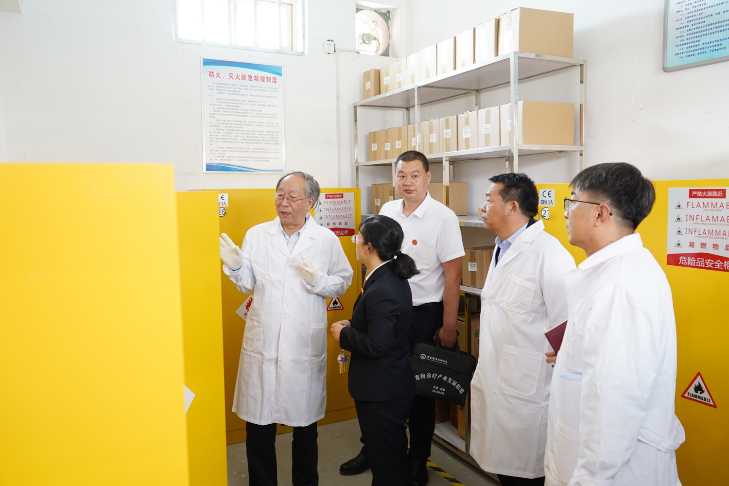 汇报会后,专家组查阅了相关资料,并深入生物工程学院、机电工程学院、化工学院、医学院实训室及化学药品及仪器库房开展了实地检查,详细了解了学院实验室管理状况,对实验室制度建设、安全标识、运行台账、消防设施、危化品储存管理等工作进行了重点检查。
