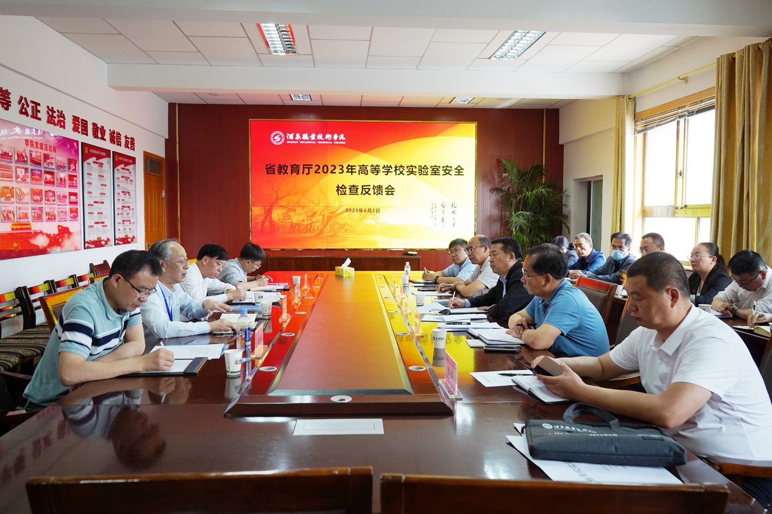 6月2日,由兰州理工大学实验室与设备管理处原处长、专家组组长崔锦峰教授,甘肃医学院科研处处长赵玉敏教授、兰州城市学院实验室与设备管理中心副主任国洪建教授及兰州理工大学注册安全工程师郝大鹏组成的专家组在酒泉市教育局党组成员、副局长赵登强的陪同下来我校开展2023年度高等学校实验室安全现场检查。学校党委副书记许军主持会议。党委委员、副校长施荣参加反馈会。