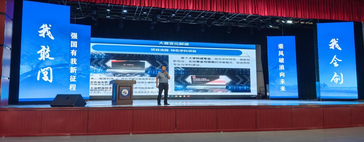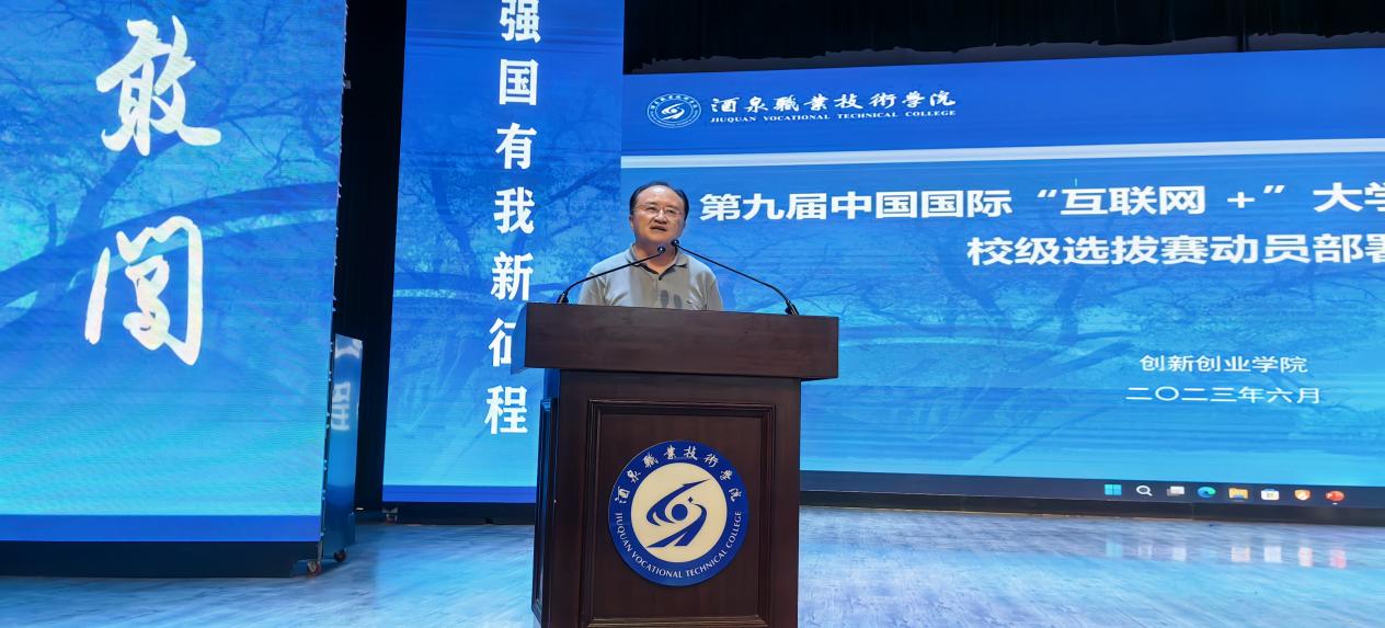 要闻快递 > 正文为进一步推动学习贯彻习近平新时代中国特色社会主义思想主题教育走深走实,提升我校赛事组织水平,激发师生创新创业热情,做到以赛促学、以赛促教、以赛促创,扎实做好“互联网+”大学生创新创业项目的培育工作,结合学校主题教育调研要求及“三抓三促”行动部署,6月15日下午,在胡杨文化活动中心召开第九届中国国际“互联网+”大学生创新创业大赛校级选拔赛动员部署会。学校党委委员、副校长王长荣教授出席会议并讲话。各部门、各学院分管领导和师生代表共300余人参加大会。