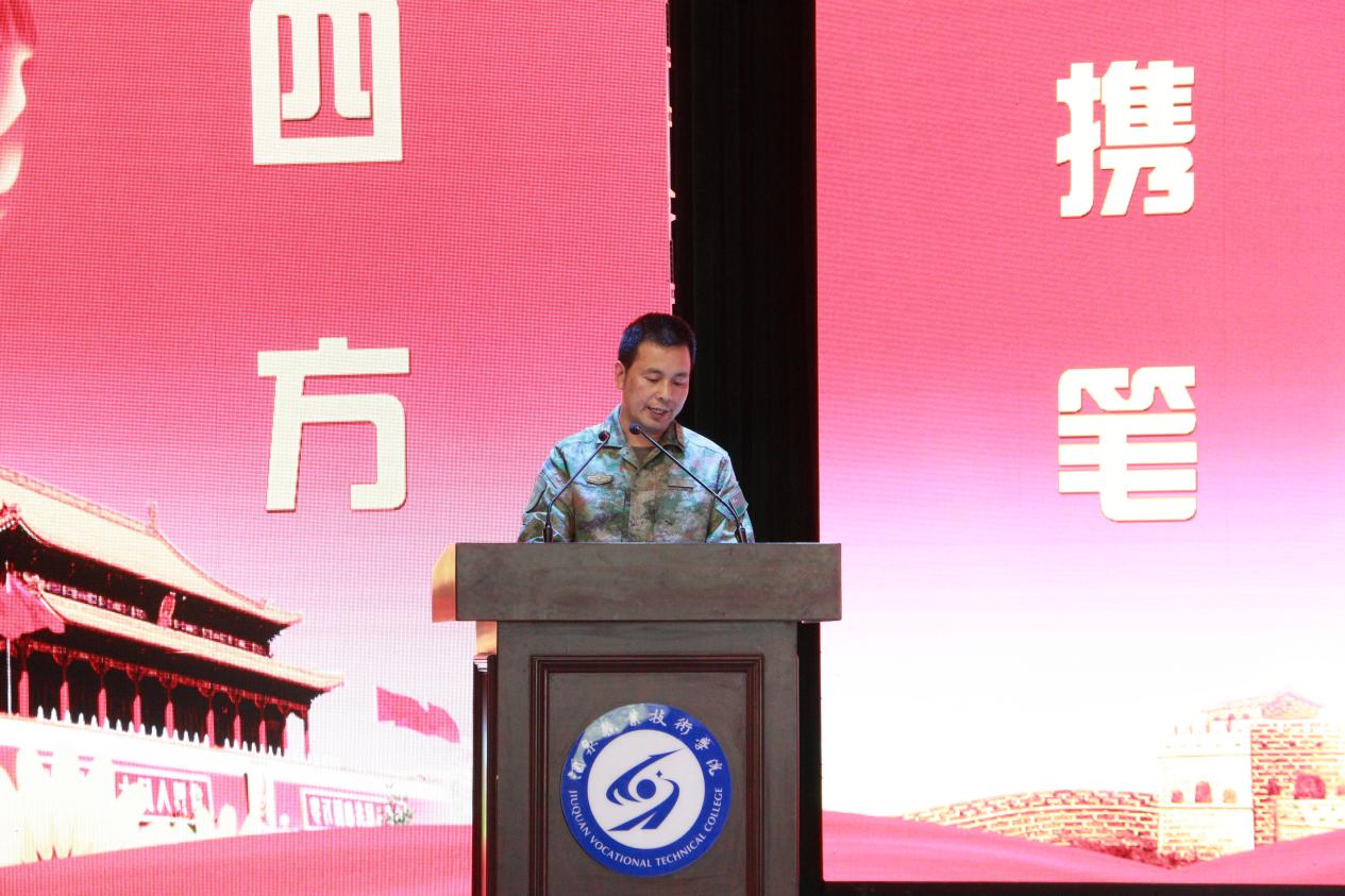 退役复学优秀大学生代表侯纪荣同学分享了他五年军旅生涯的感受与体会,鼓励广大青年学生积极投身国防事业,踊跃报名参军。志愿参军青年代表宋珂楠同学表达了他矢志报国、参军入伍的意志和决心,并倡议全体大学生响应国家号召,响应领袖召唤,携笔从戎,投身军营,为国防和军队现代化建设贡献力量。