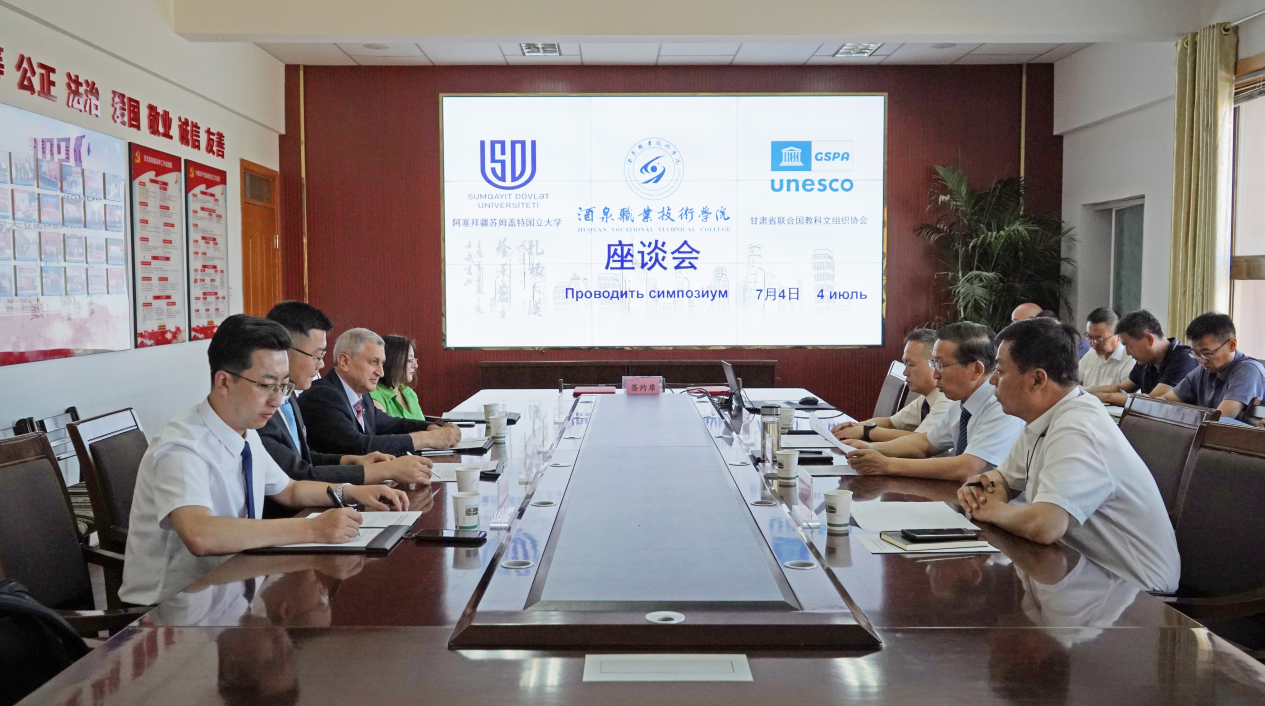 会上,学校党委书记、校长易志军教授向阿塞拜疆苏姆盖特国立大学负责人介绍了酒泉职业技术学院办学历程、办学特色及近年来的发展情况,表示学校非常重视与阿方的此次合作,并愿意借助阿塞拜疆苏姆盖特国立大学这一国际平台,进一步加深双方国际交流与合作,通过开展教师互访、学生互换、学术交流等合作形式,促进我校国际化办学水平的提升。