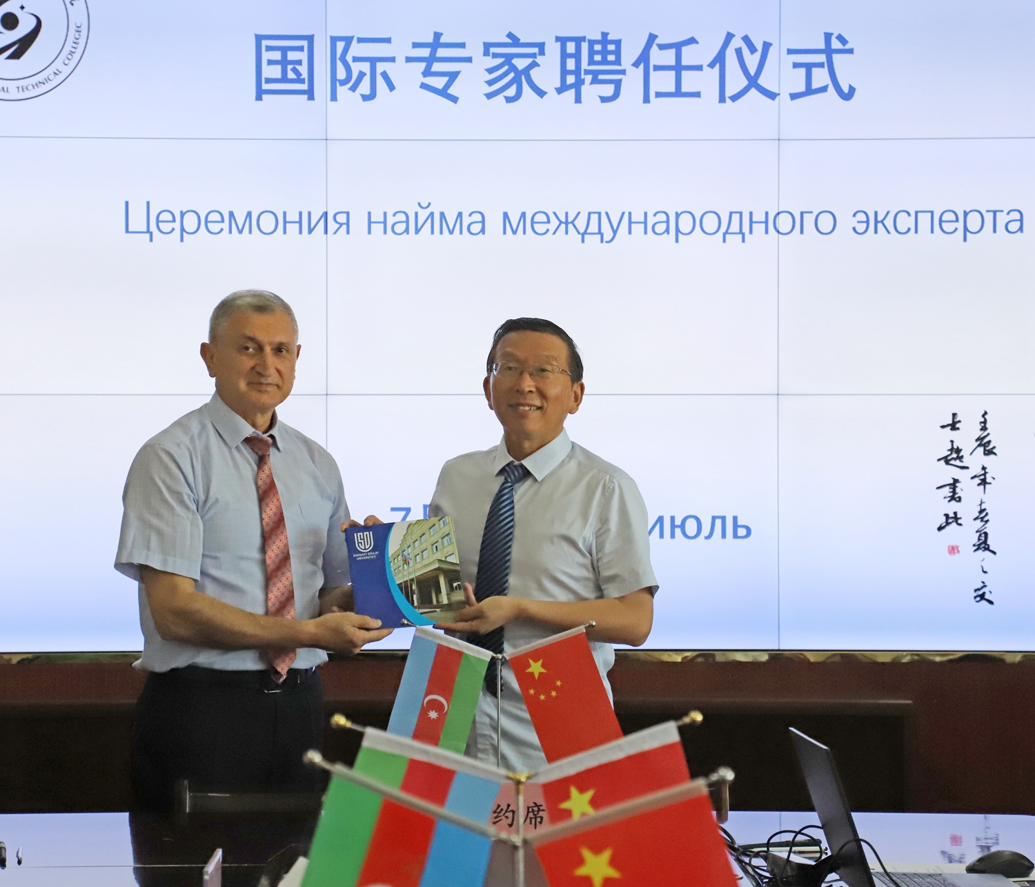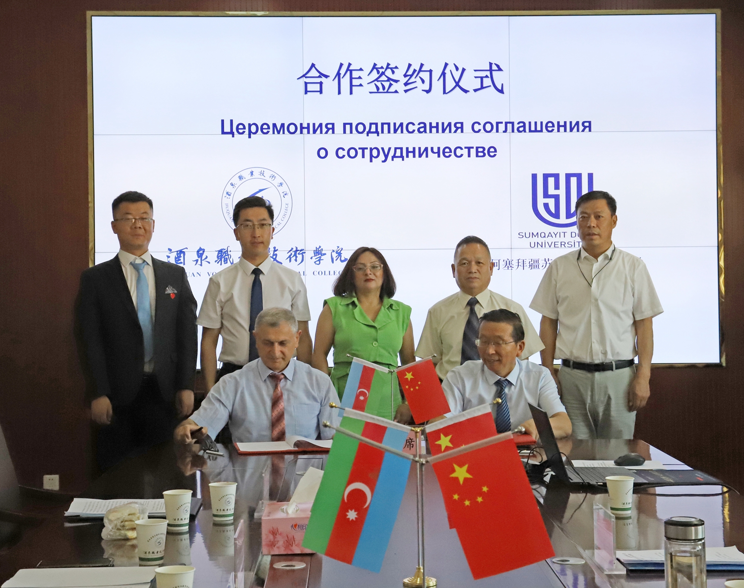 在甘肃省联合国教科文组织协会代表的见证下,中阿双方学校负责人签署了国际合作备忘录,学校还聘请了加法尔· 阿塔耶夫博士(阿塞拜疆苏姆盖特国立大学副校长)和萨达卡特·法图拉耶夫博士(阿塞拜疆苏姆盖特国立大学交流处处长)为我校的特聘国际专家。