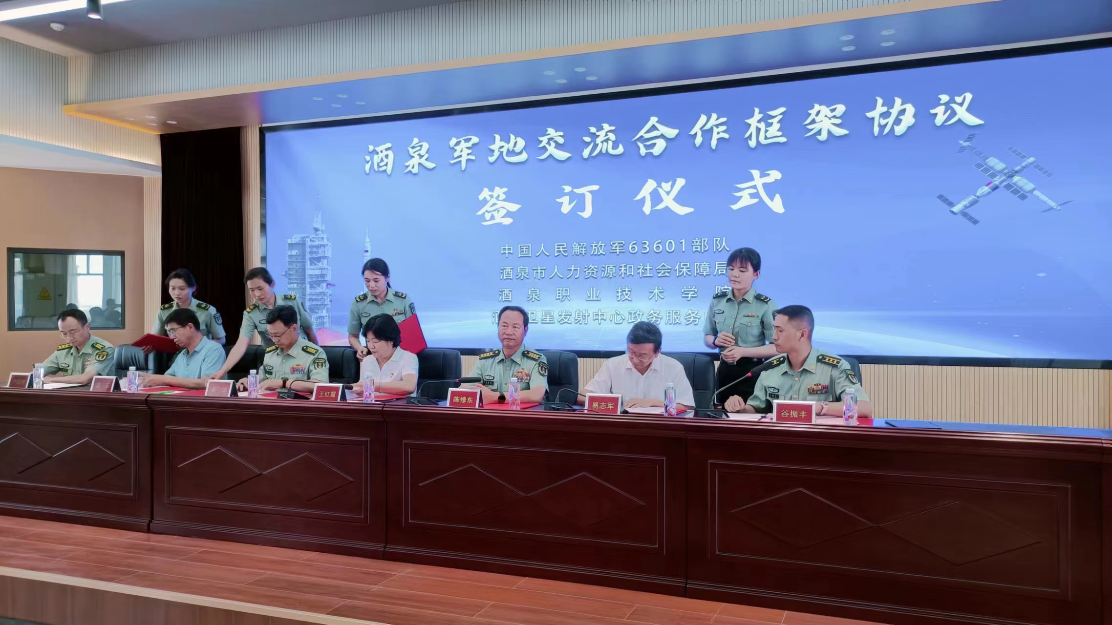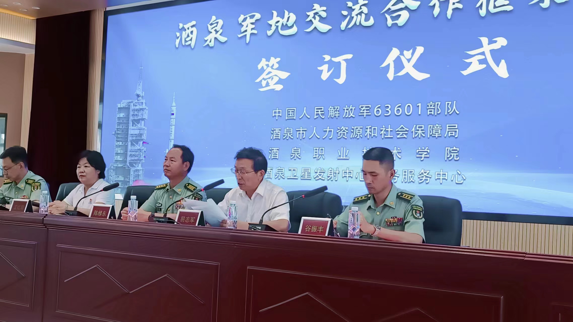 为深入学习贯彻党的二十大精神,进一步加强军地合作交流,厚植国防动员和后备力量沃土,7月9日,酒泉职业技术学院、酒泉市人社局、酒泉卫星发射中心政务服务中心与驻场部队在部队驻地联合签订了军地交流合作框架协议。