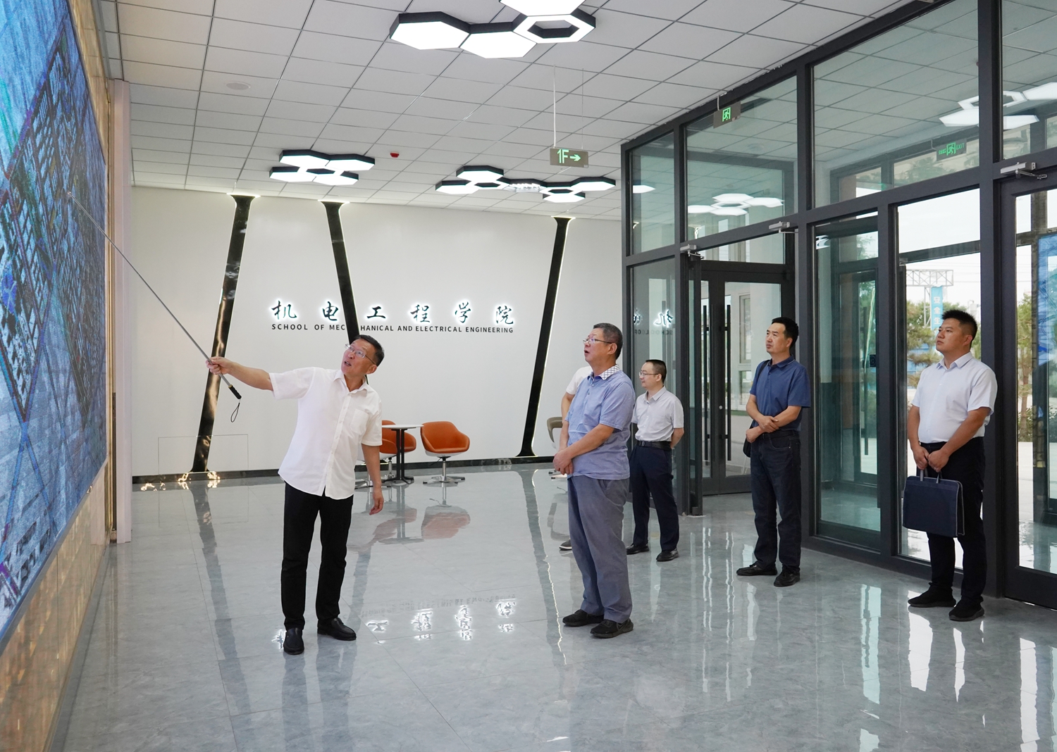 余学军一行实地查看了学校智能制造中心、现代农业技术中心、医教协同中心、新能源技术国际共享中心、机械加工中心、土木水利实训中心等场地,重点了解了学校实验实训条件建设、产教融合和校企合作开展等情况。