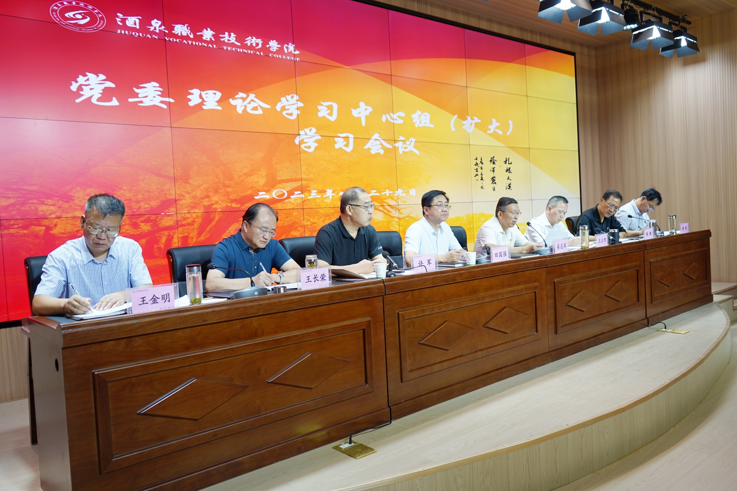 要闻快递 > 正文8月29日,学校召开党委理论学习中心组(扩大)学习贯彻习近平新时代中国特色社会主义思想主题教育会议。酒泉市党委(党组)理论学习中心组巡学旁听工作组到会巡学旁听学校党委理论学习中心组学习情况。党委书记、校长易志军主持会议。
