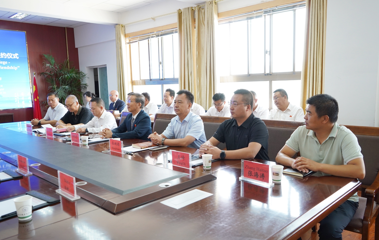 座谈后,双方代表还签署了《“中蒙友谊”专科-本科人才培养项目协议》,并互赠礼品。会后,与会人员合影留念。
