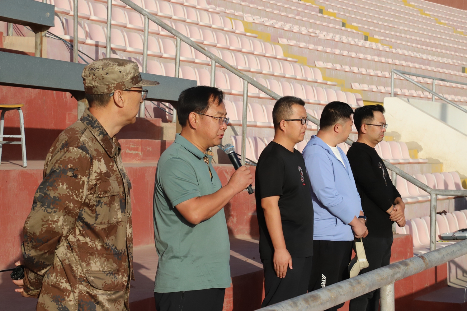 8点30分,迎着金色的朝阳,同学们在体育场集结待命、整装待发。党委委员、副校长施荣作动员讲话,鼓励同学们发扬不怕苦不怕累的精神,听从指挥、服从命令、直面挑战,锻炼坚强的意志,要求同学们通过此次拉练锻炼自己的意志品质,同时也提醒同学们要注意行军过程中的安全。