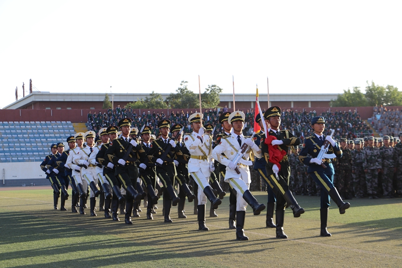 要闻快递 > 正文金秋九月,秋高气爽。9月20日,学校举行酒泉职业技术学院、兰州理工大学新能源学院2023级新生军训会操暨第十五届田径运动会开幕式,共同检阅2023级新生军训成果。西部战区96111部队某部营长王亮亮少校、酒泉职业技术学院党委书记、校长易志军,党委委员、副校长王立智,党委委员、副校长王长荣,党委委员、纪委书记、监察专员魏韡以及兰州理工大学新能源学院党委书记王胜强出席活动。党委委员、副校长施荣主持活动。