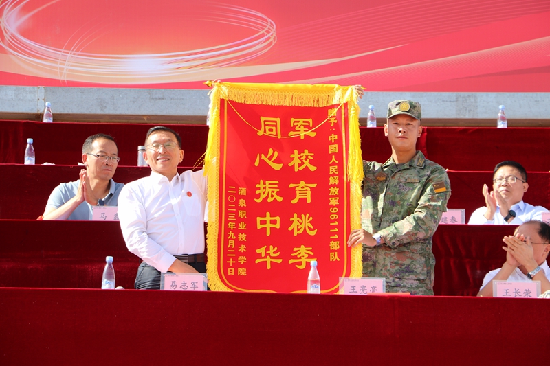 党委书记、校长易志军向军训帮训教官所在部队西部战区96111部队赠送锦旗,表达了对承训教官衷心的感谢和诚挚的敬意。