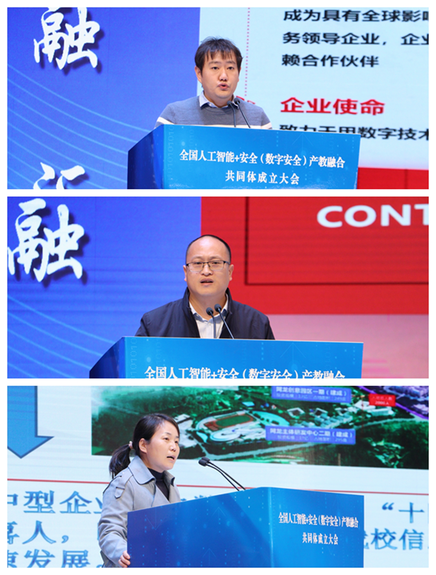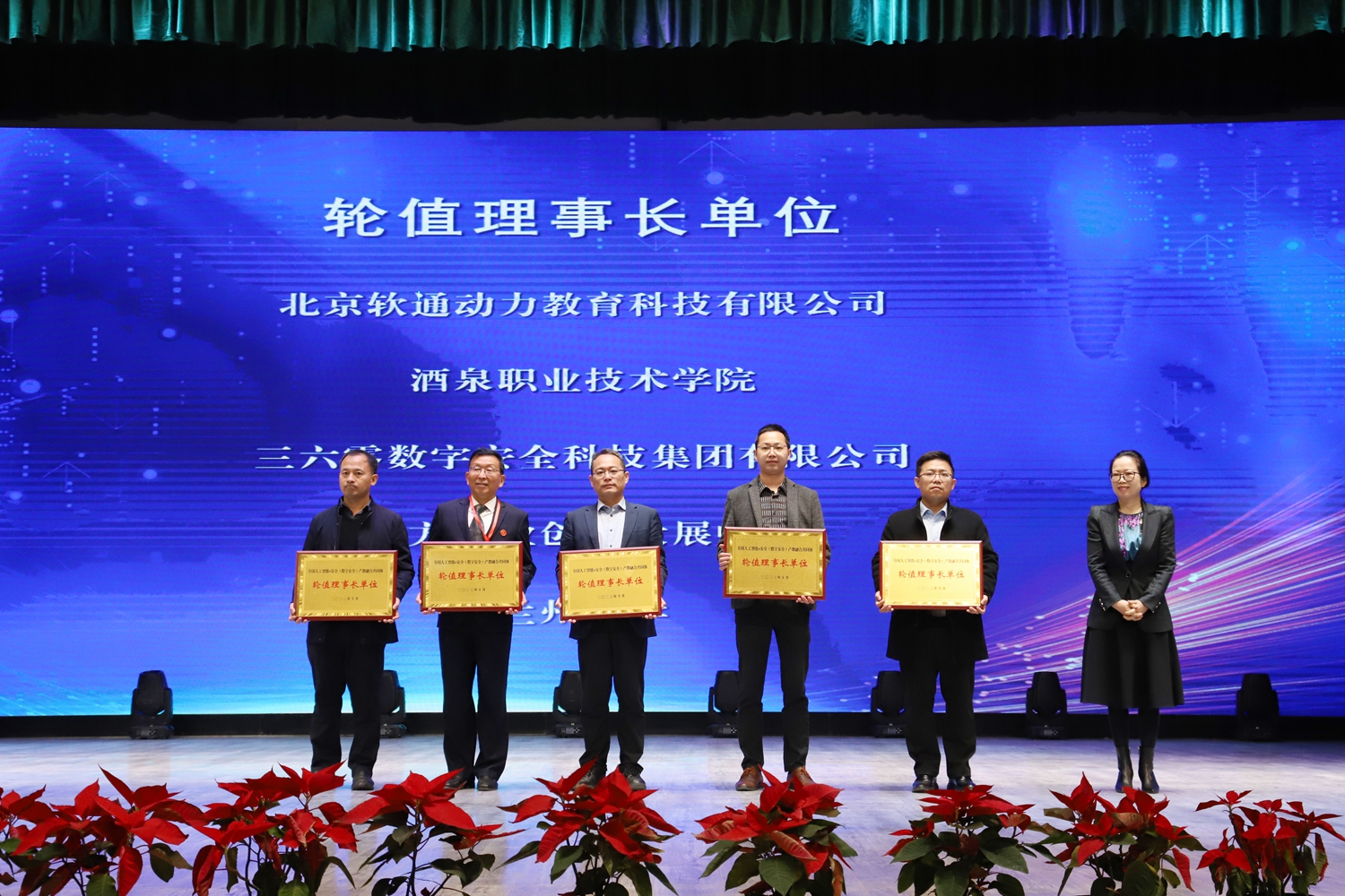 全国人工智能+安全(数字安全)产教融合共同体启动。为副理事长单位、常务副理事长单位和轮值理事长单位进行了授牌。