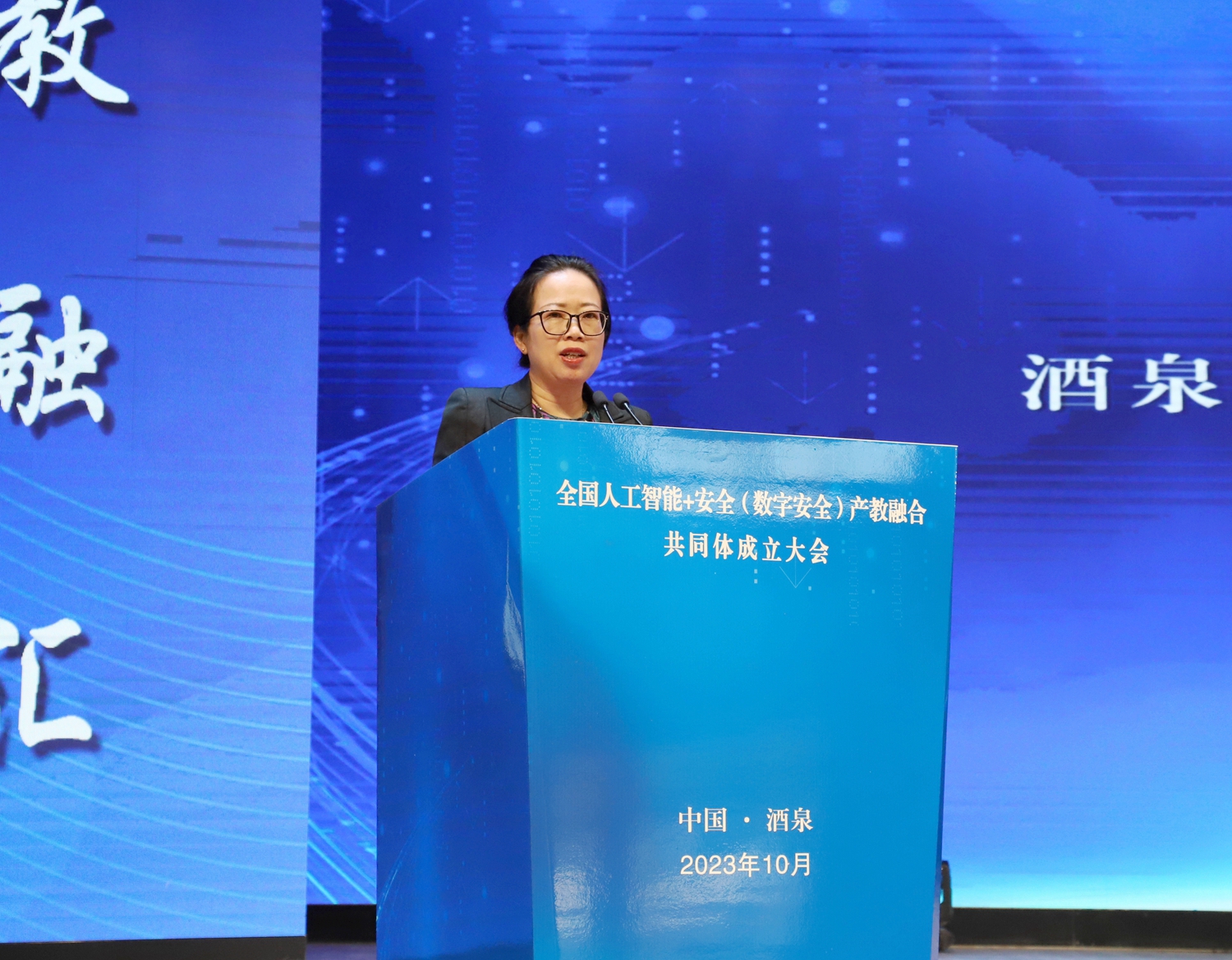 义战鹰致欢迎辞,她指出依托全国人工智能+安全(数字安全)产教融合共同体和酒泉工业互联网发展的雄厚基础,共同体必将进一步带动酒泉市人工智能产业发展,为“酒泉制造”向“酒泉智造”转变提供强劲动力。酒泉将全面深化与广大企业的多领域合作,积极为“AI+工业互联网”平台建设与推广创造条件、做好服务。