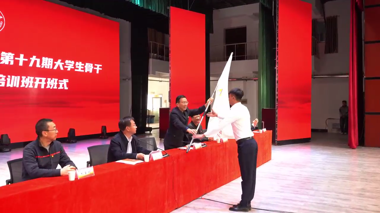 “青马工程”第十九期大学生骨干培训班学员、教育与艺术学院2023级颉如霞同学作为新一期学员代表发言。会上为十八期“青马工程”结业学员代表颁发证书,并为第十九期培训班授旗。