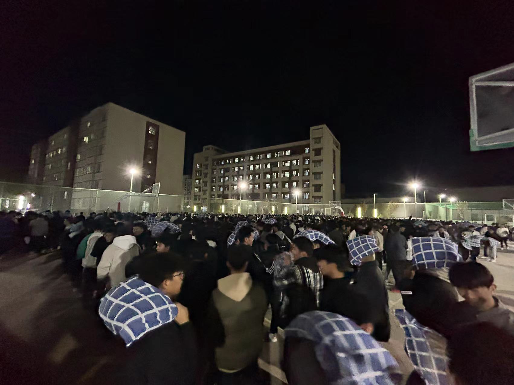 第二次警报响起,楼宇内学生在公寓管理员的引导下,按照预定疏散路线,从公寓迅速有序地靠右向楼外集结地点疏散;随后,各学院清点、汇报人数,确保所有学生全部安全撤离。