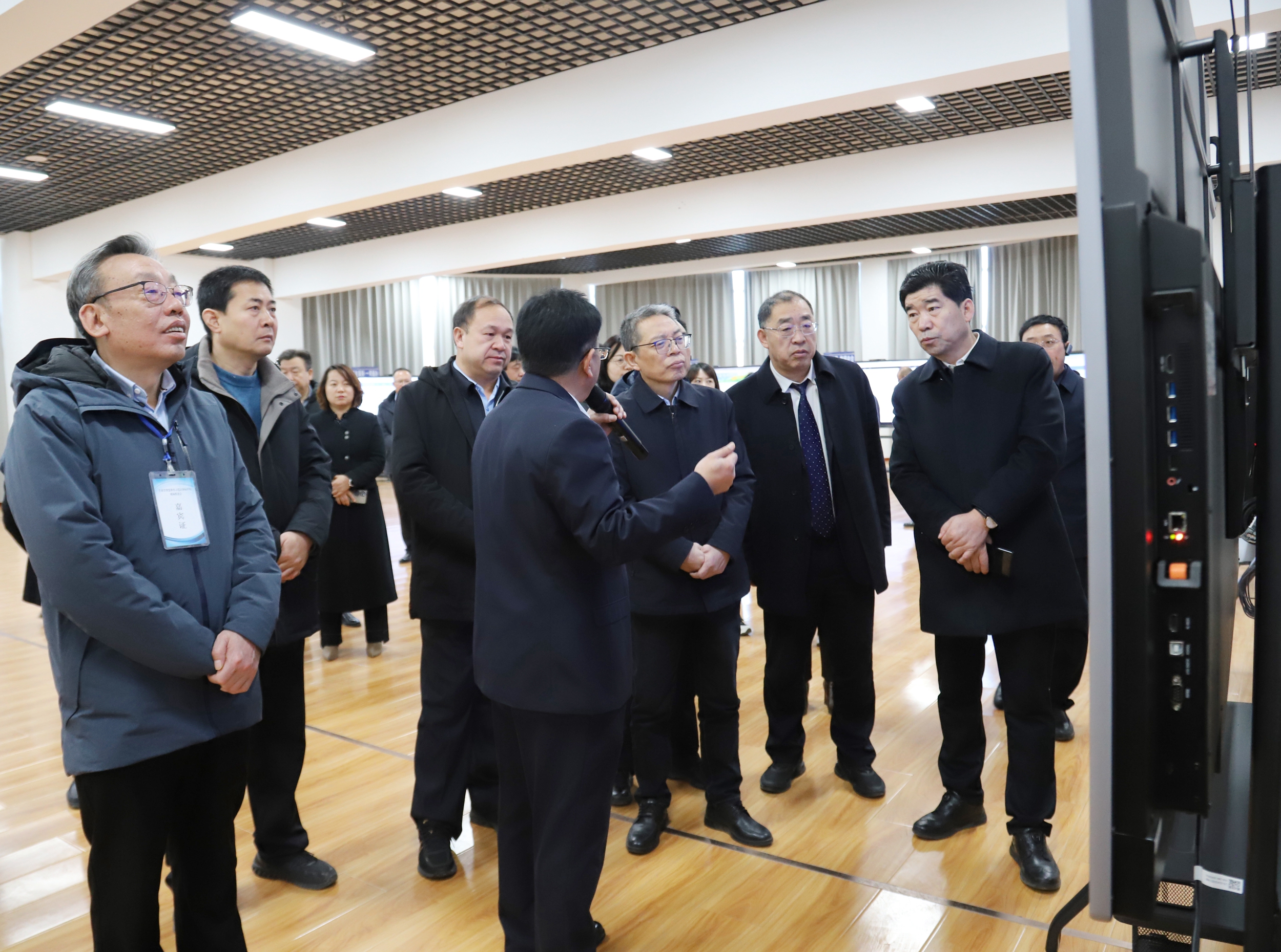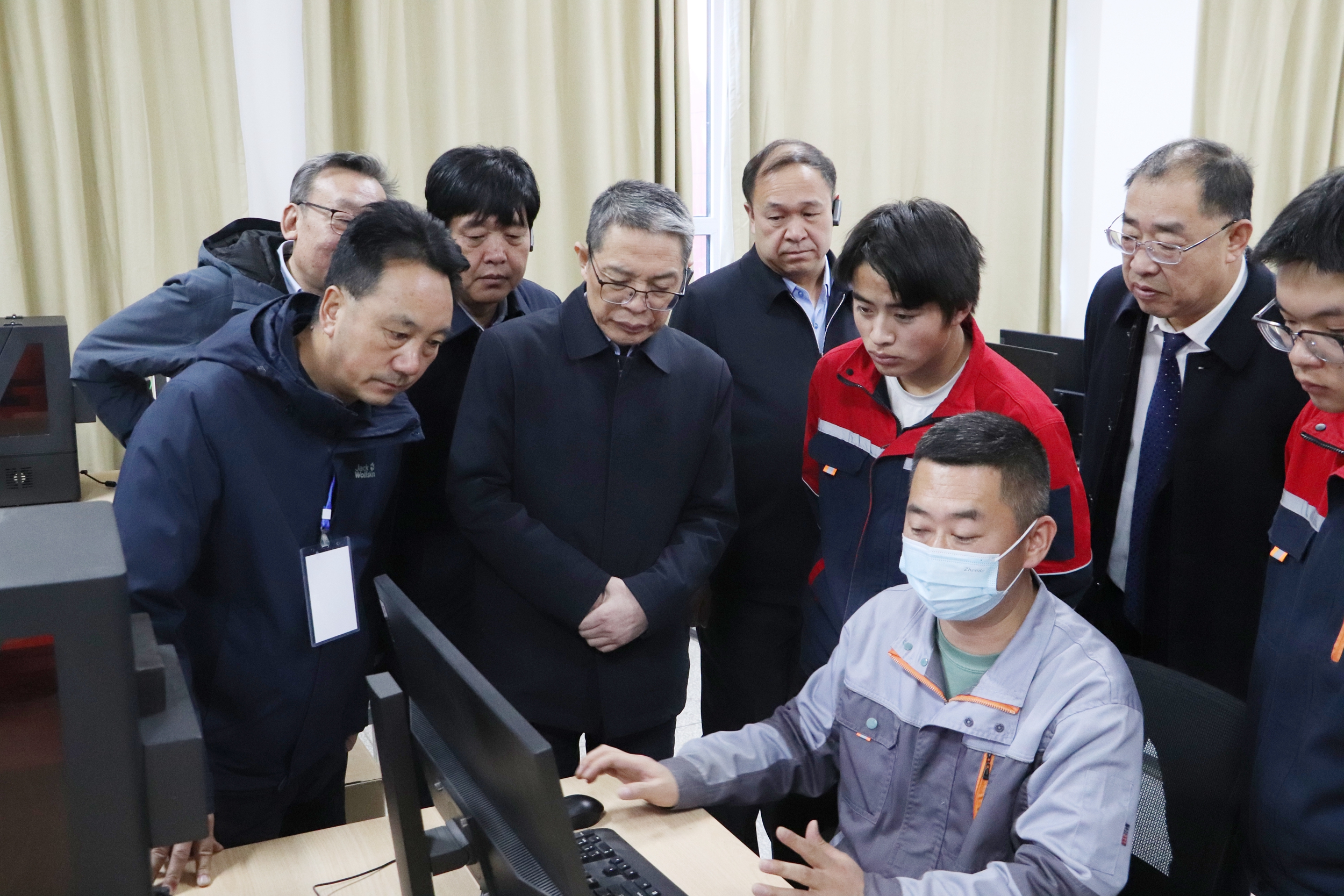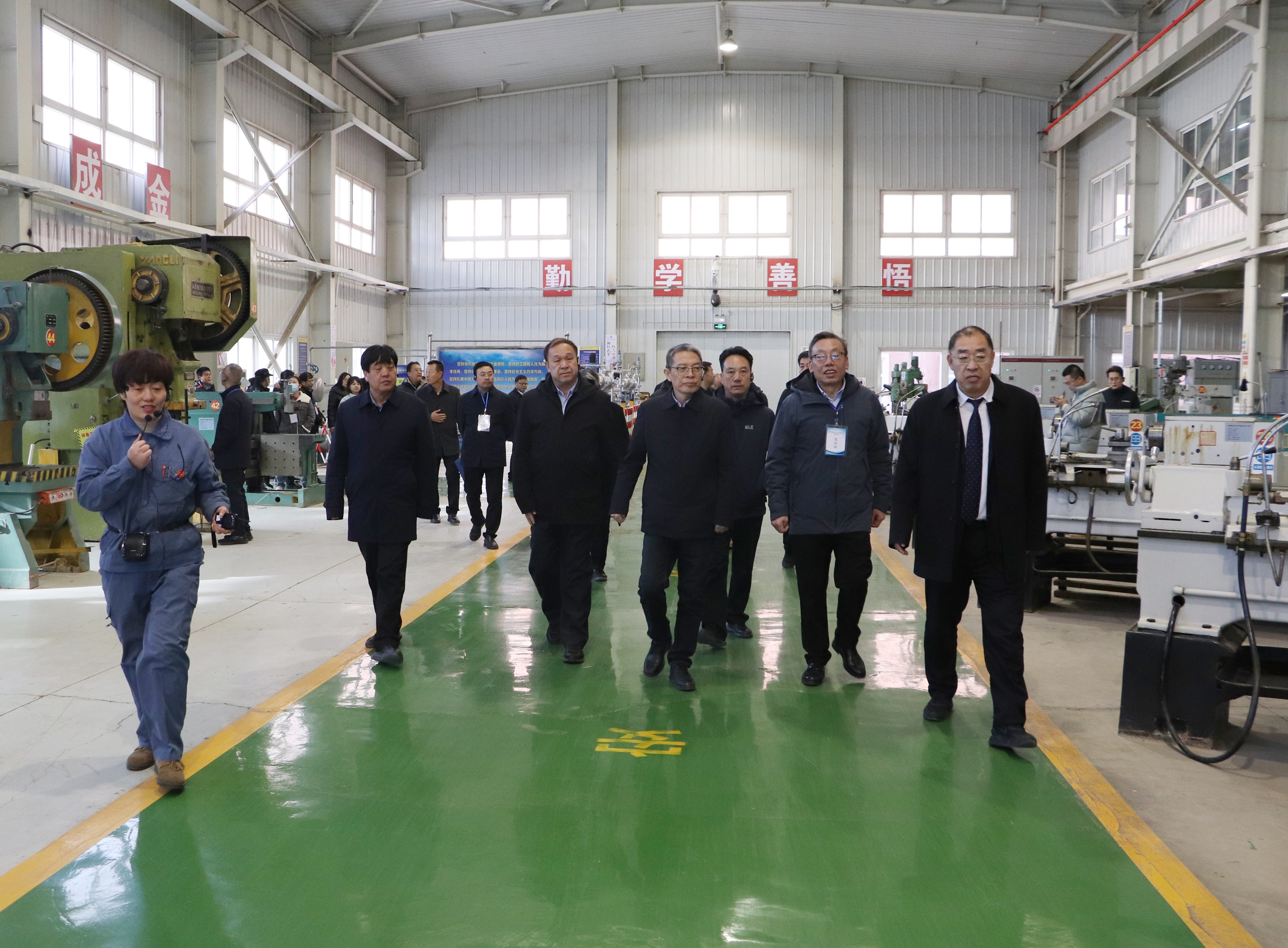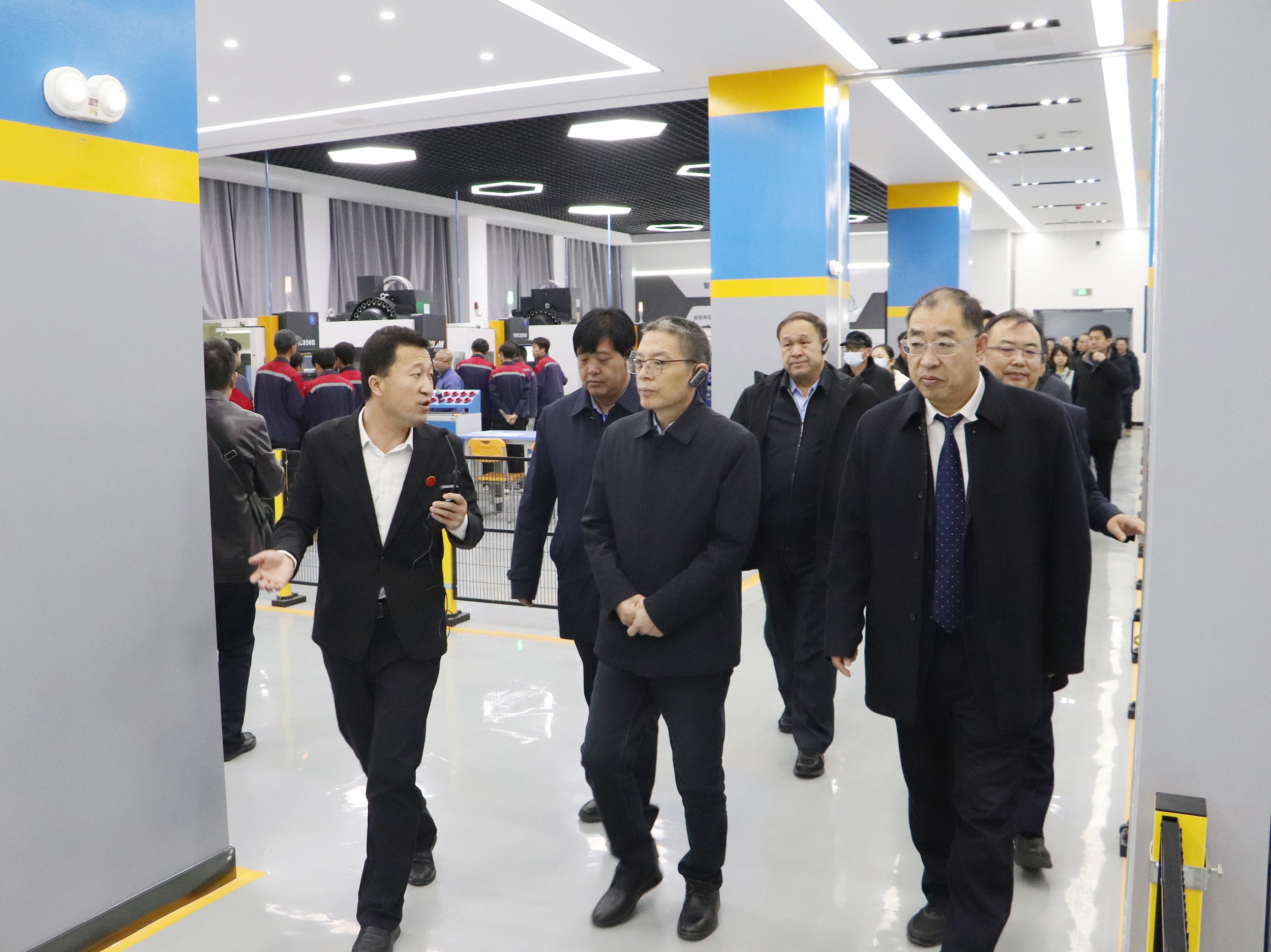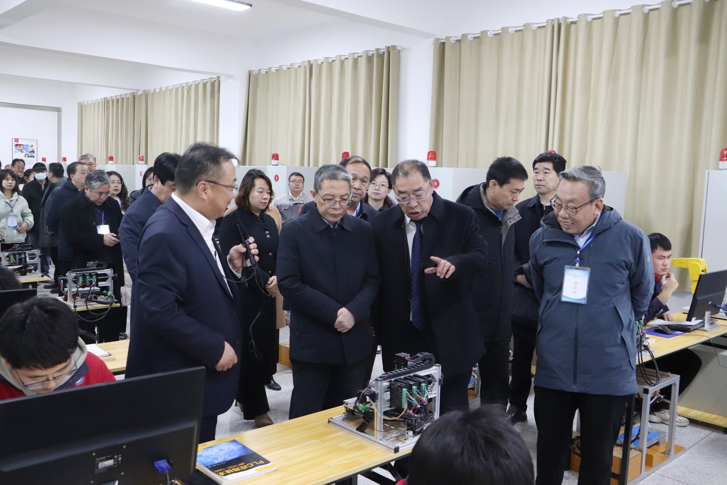 曾华辉一行在党委副书记许军,党委委员、副校长王金明和党委委员、副校长施荣的陪同下实地查看了智能制造中心、新能源技术国际共享服务中心、工科实训基地和甘肃省太阳能发电系统工程重点实验室等实验实训设施,重点对学校推动教育数字化融合创新发展,提升学校教育数字化水平,数据治理、智慧校园、人工智能等领域实现数字化应用赋能学校高质量发展等方面进行了实地考察。
