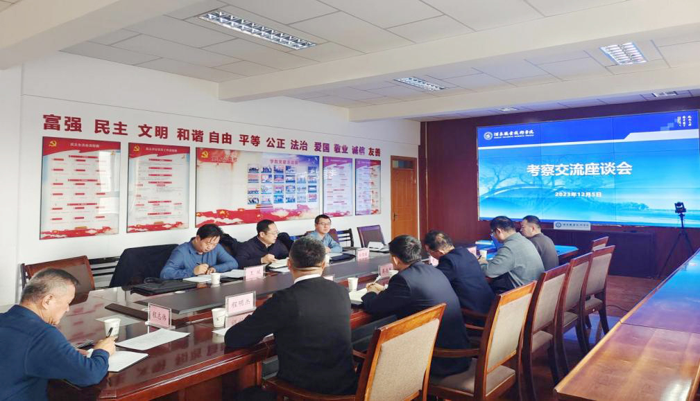 考察结束后,在学校行知楼四楼会议室进行了座谈。学校党委书记、校长易志军介绍了学校的发展规划和建设情况,并对能源局调研的内容进行详细的汇报。能源局马伟局长强调能源局会持续做好酒泉新能源企业与学校合作的桥梁,促进校企合作产教融合,全力助推学校的高质量发展,特别是助力学校创建酒泉职业技术大学。(信息员:新能源工程学院 李亮)