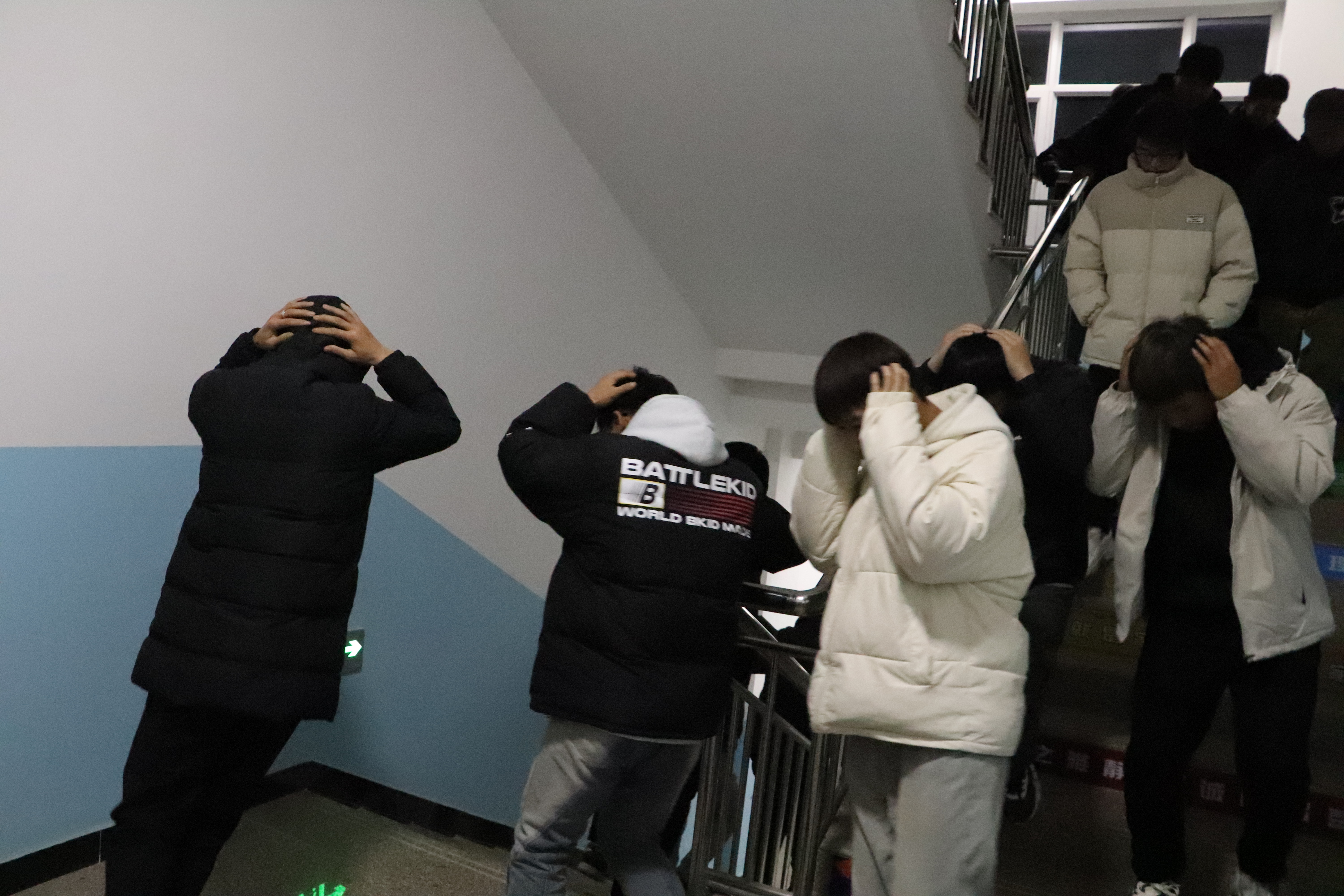 22:00随着第一声警报响起,全校10000余名在校学生参加了演练活动。演练过程中,全体学生服从命令,步调一致,各岗位工作人员坚守岗位,恪尽职守,各负其责。全体学生在班主任老师、班级安全员的指导下以最快的速度用双手护住头部,进行避险;第二声警报响起时,教师组织学生弯腰、护头、戴口罩或用毛巾掩住口鼻,沿着逃生路线快速、有序地撤离宿舍到达指定的应急集合场所。