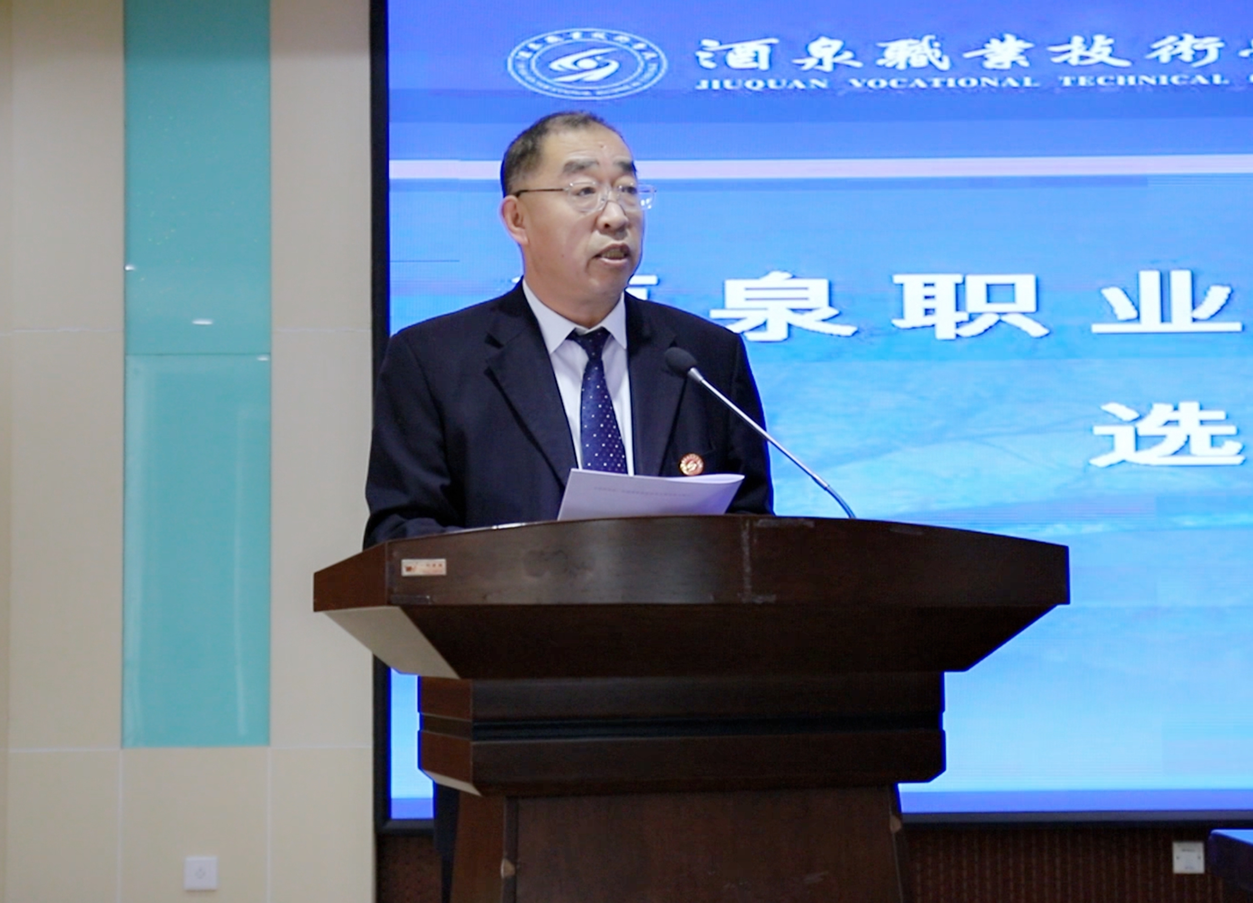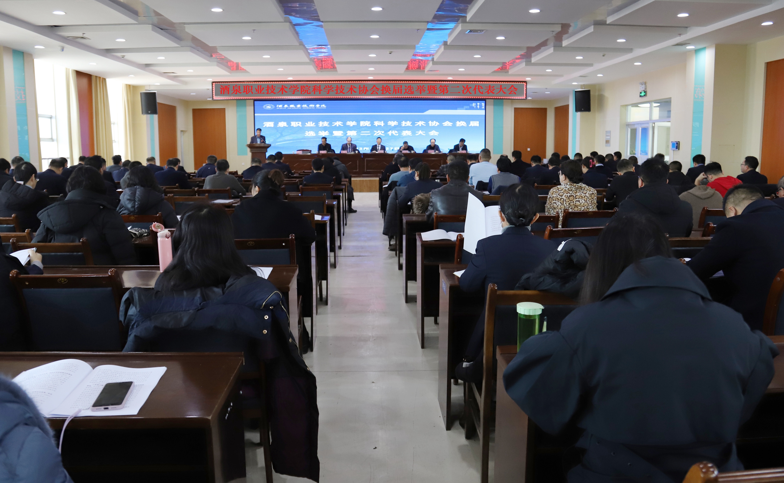 要闻快递 > 正文12月27日下午,酒泉职业技术学院科学技术协会换届暨第二届代表大会召开,会议通过各项议程,顺利完成换届选举工作。酒泉市科协党组书记云红琦、酒泉职业技术学院党委书记、校长易志军出席会议并讲话。酒泉职业技术学院党委副书记许军,酒泉职业技术学院党委委员、副校长王长荣,酒泉职业技术学院党委委员、纪委书记、监察专员魏韡,酒泉职业技术学院党委委员、副校长施荣及机关各职能部门、各二级学院、酒泉卫校、工贸中专的128名代表参加了会议。