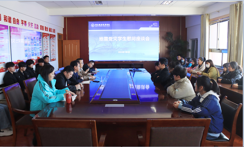 为持续做好寒假期间地震灾区学生帮扶工作,1月5日上午,学校召开了地震受灾家庭学生寒假返乡慰问座谈会。学校党委委员、副校长施荣出席座谈会,临夏积石山县及青海循化撒拉族自治县籍灾区学生、学工部有关同志及相关学院副院长参与座谈。