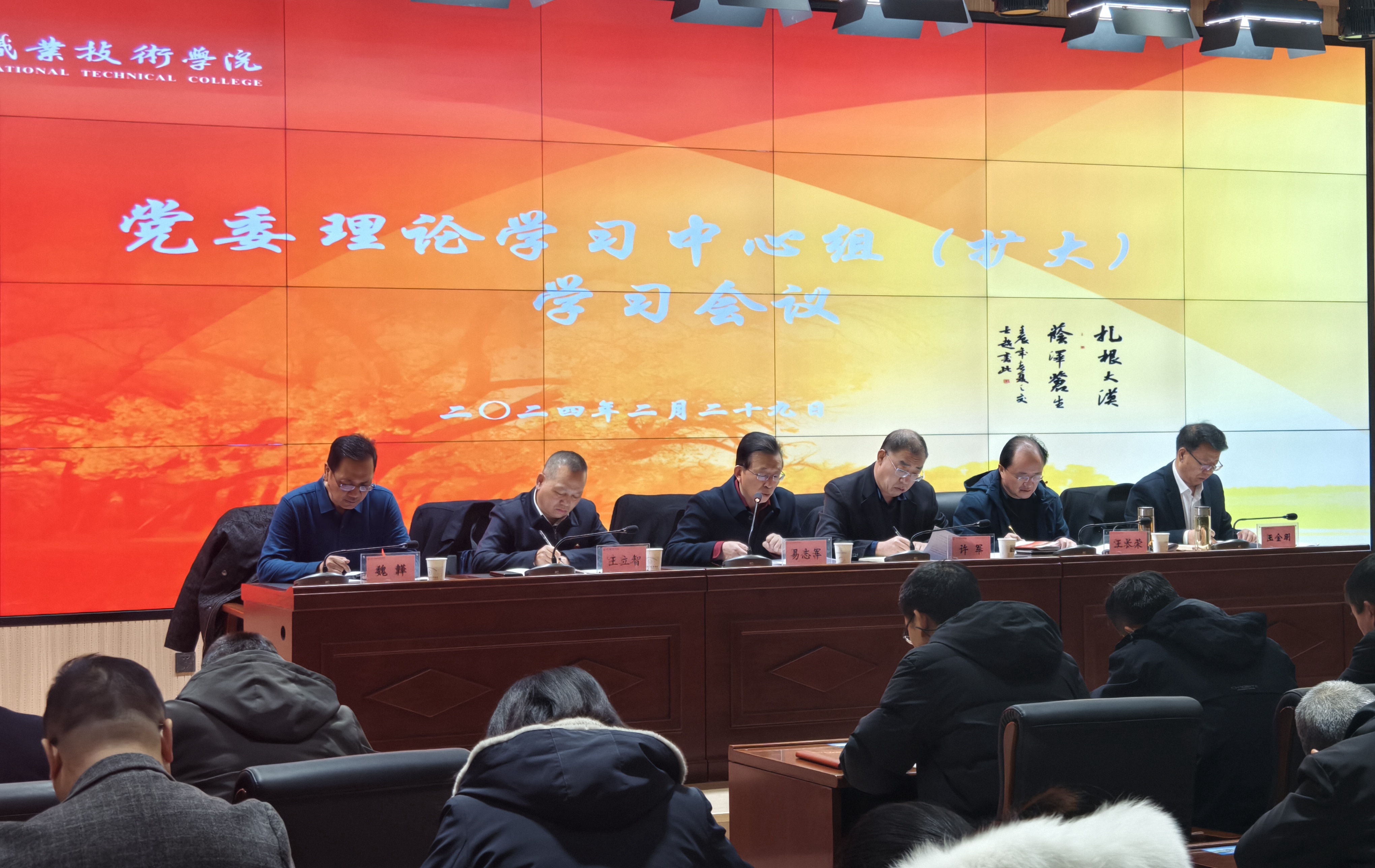 要闻快递 > 正文2月29日,学校召开党委理论学习中心组(扩大)学习会议。党委书记、校长易志军主持会议。学校党委会委员、全体中层干部参加会议。