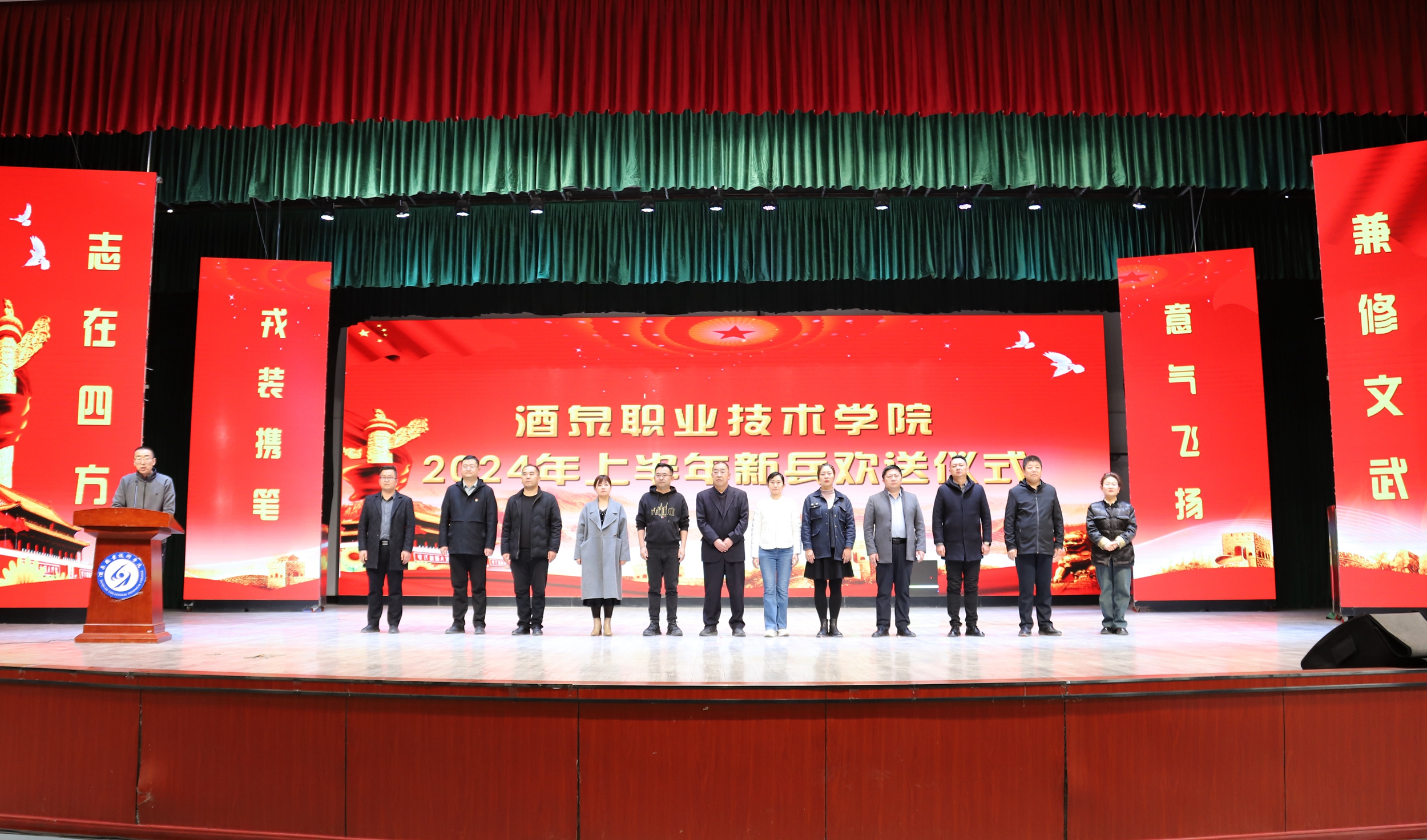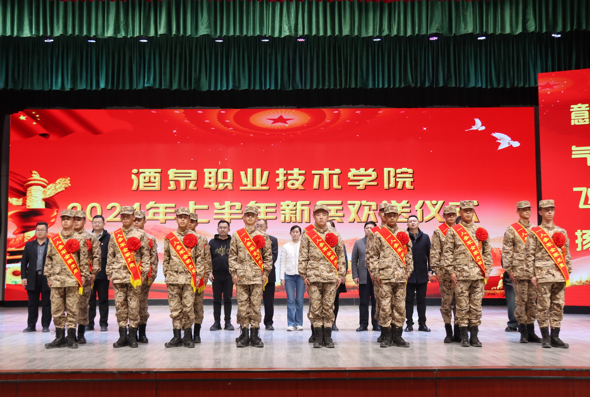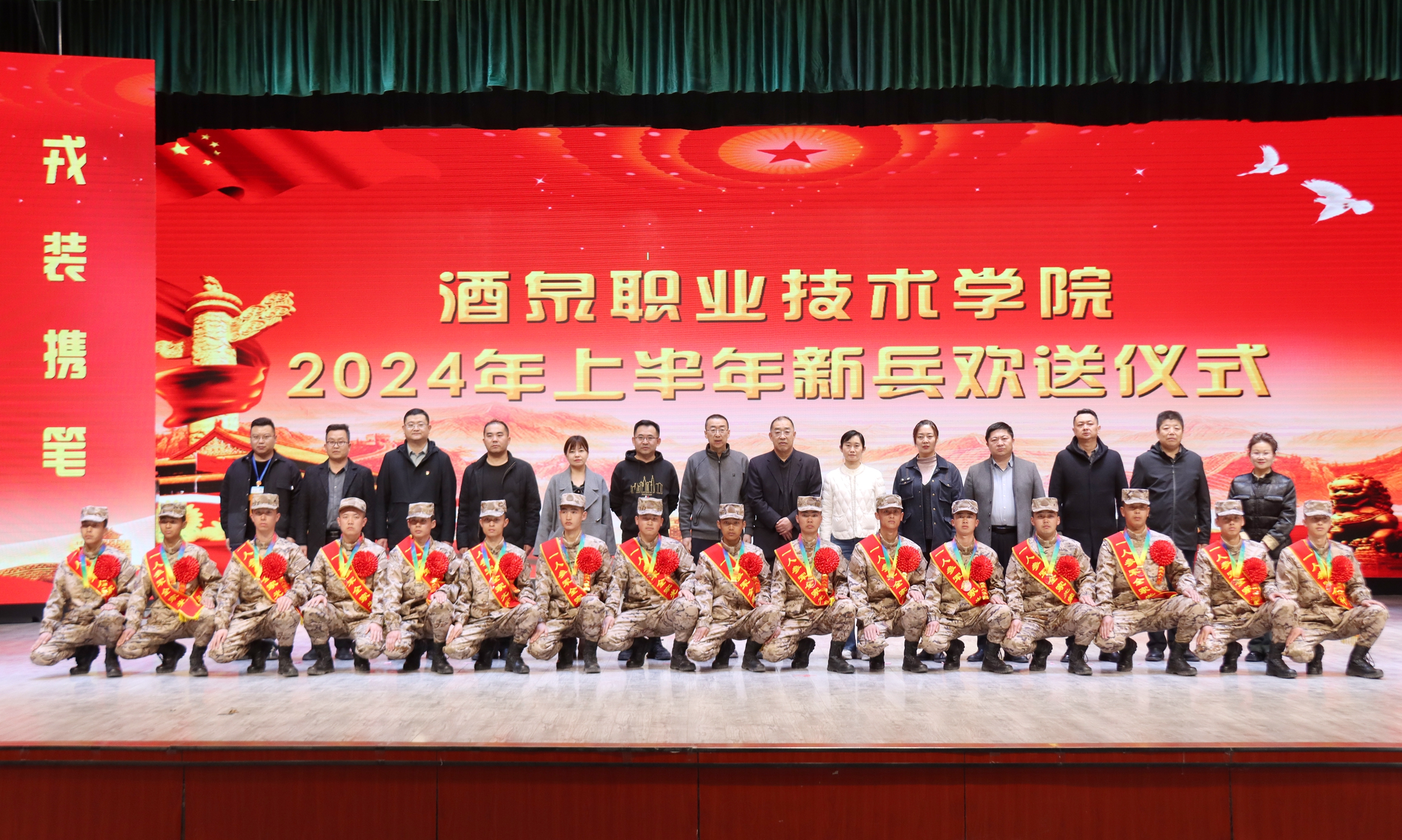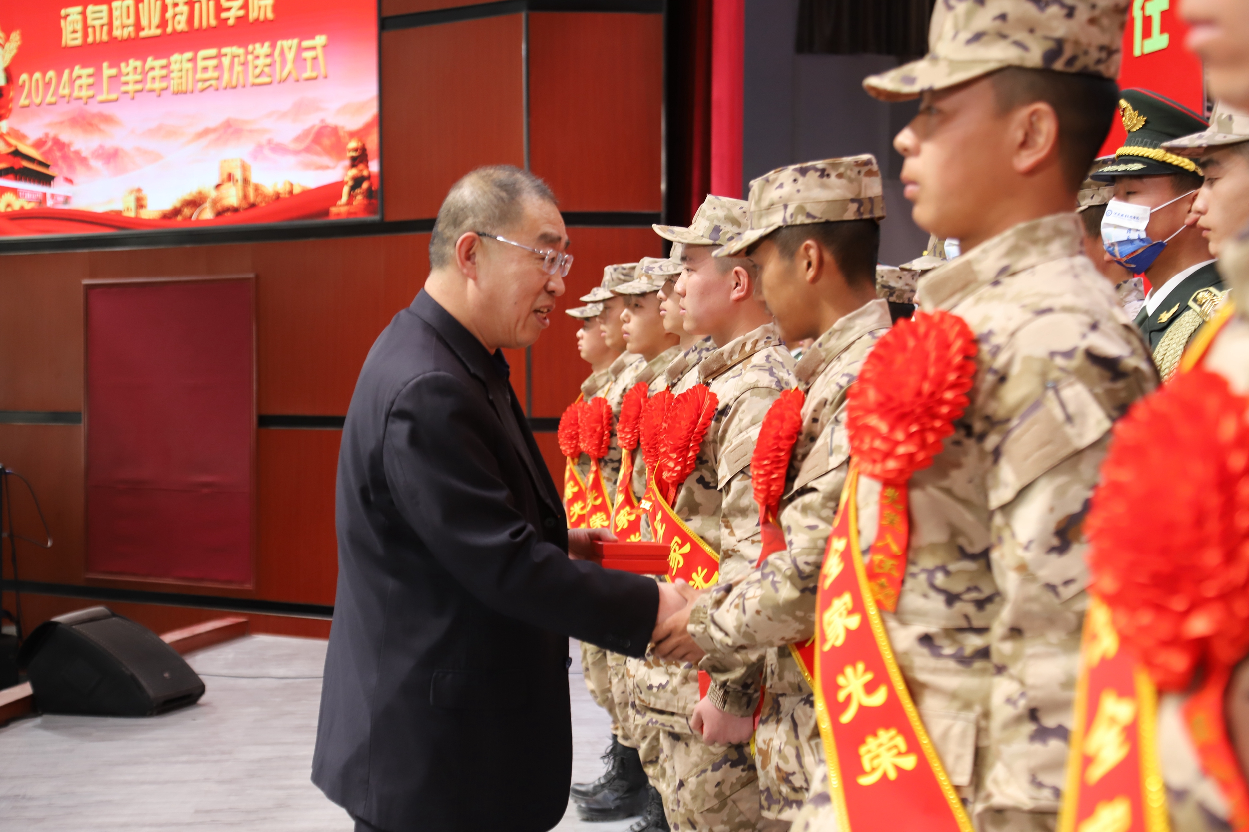 近年来,一批又一批酒职学子义无反顾奔赴军营,为保卫国家安宁、维护世界和平做出了积极贡献。他们在部队中表现突出,将胡杨精神移植军营,树立了大学生应有的风采,为学校争得了荣誉。希望16名新战士在火热的军营里不惧风雨、不惧挑战,在部队这个大熔炉里摔打磨练、百炼成钢,争当“有灵魂、有本事、有血性、有品德”的新一代革命军人,为奋斗的青春交上一份满意的答卷。