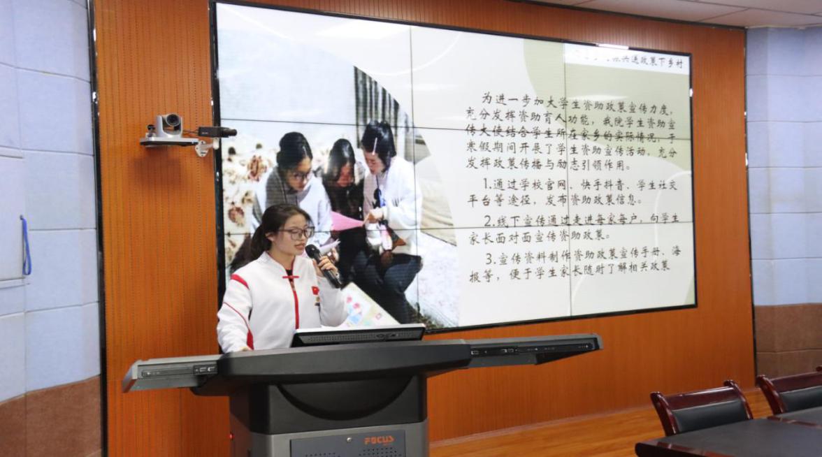 为深入学习贯彻习近平新时代中国特色社会主义思想、党的二十大精神,进一步深入宣传党和国家学生资助政策,让家庭经济困难学生不因贫困而上不起学,能在党和国家的关怀下卓越成长成才,3月21日下午,学校召开“2023年寒假学生资助宣传大使工作交流总结会”。各二级学院团委书记、辅导员、资助宣传大使及部分学生代表参加。