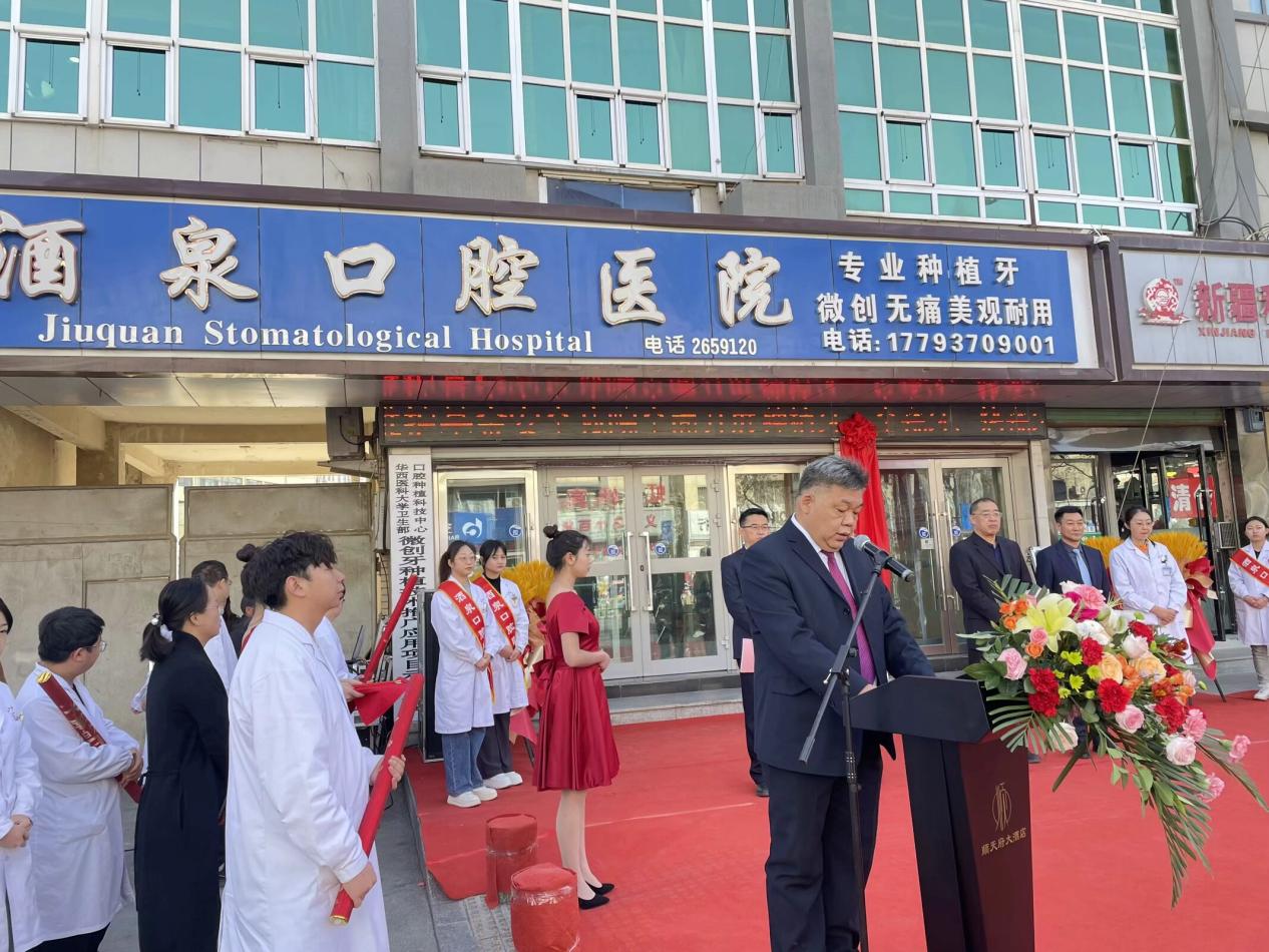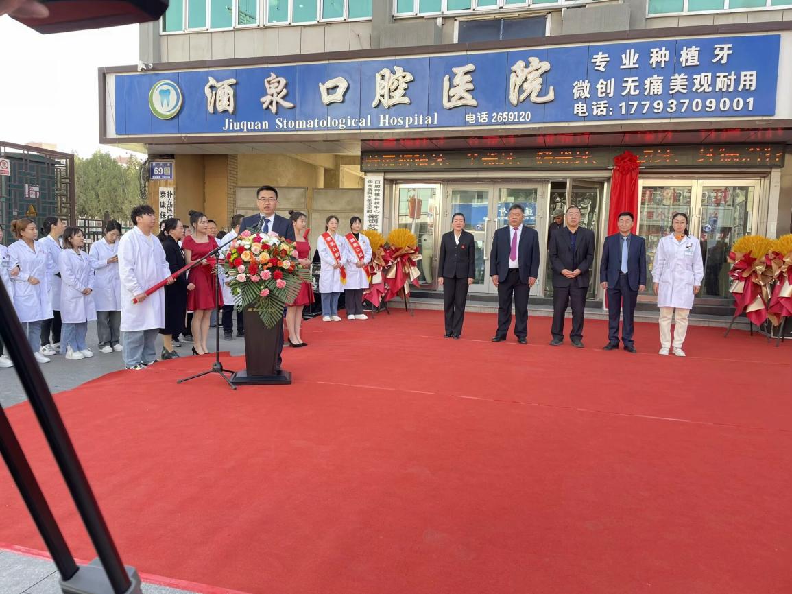 最后,许军讲话表示,在酒泉口腔医院设立口腔医学技术教学实践基地是学校专业建设的重要举措,标志着校院合作的进一步深化,必将提高口腔医学技术临床实践教学水平,提升人才培养质量,为社会输送更多优秀的口腔医学技术专业人才。下一步校院双方将在学生实习就业、师资互派、科研协作、资源共享等方面展开更加全面的合作,进一步深化医教协同发展,助力酒泉市医疗卫生事业高质量发展。