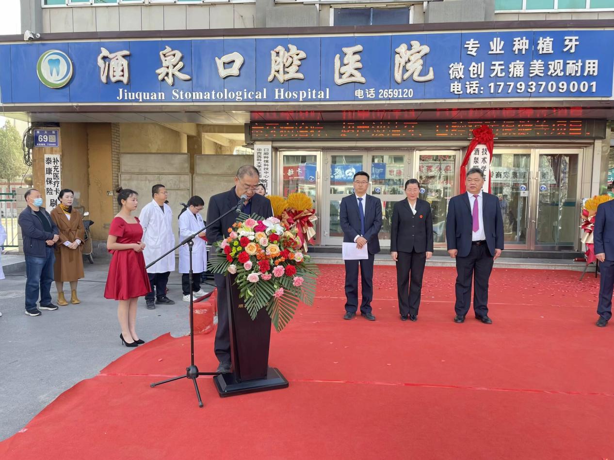 孙吉峰致辞,他对酒泉职业技术学院党委副书记许军一行的到来表示欢迎,对酒泉职业技术学院积极支持建设口腔医学技术教学实践基地表示感谢,并表示酒泉职业技术学院口腔医学技术专业教学实践基地落户酒泉口腔医院,建立口腔医学技术教学实践基地是校企合作实现双赢、共谋发展的重要举措。